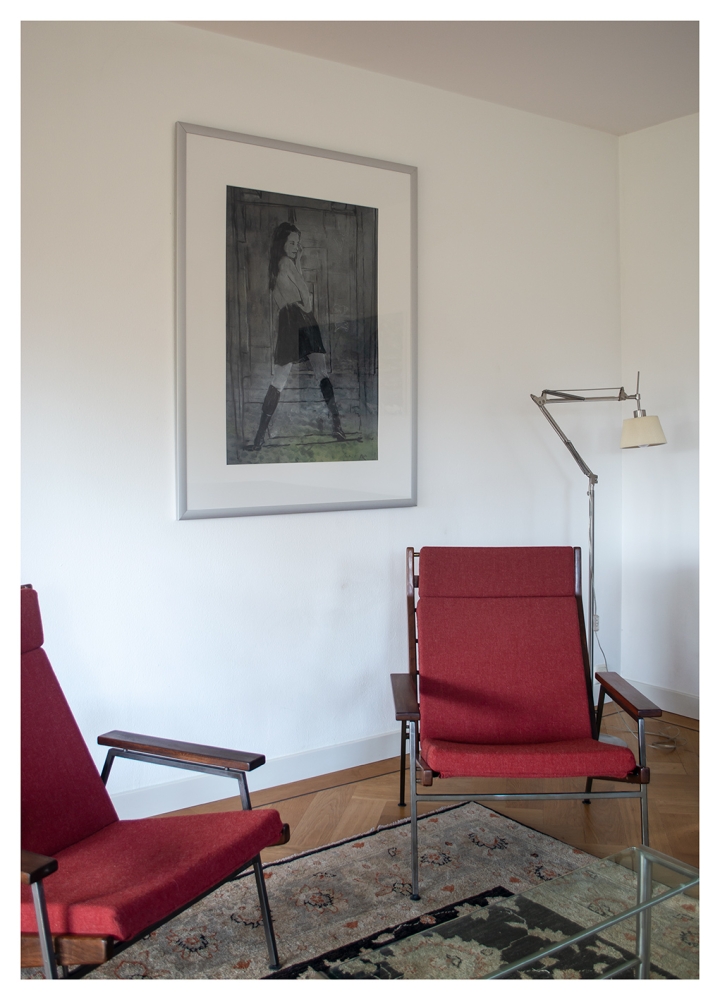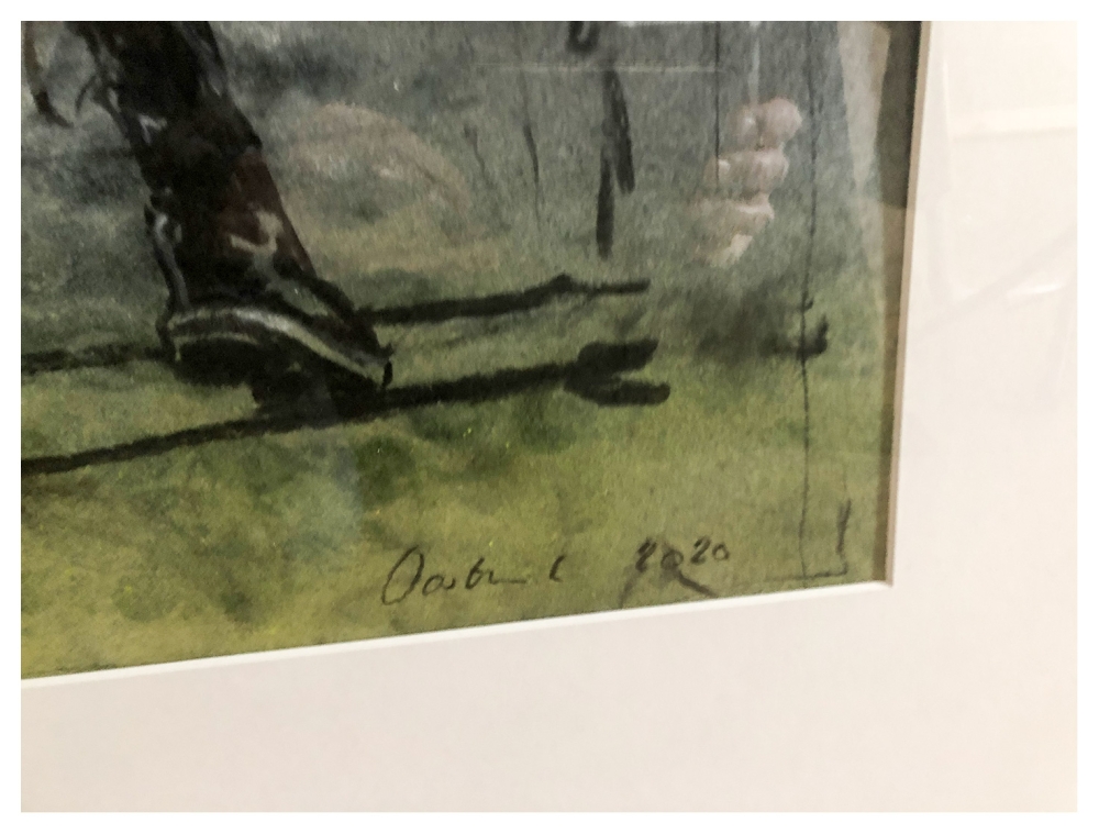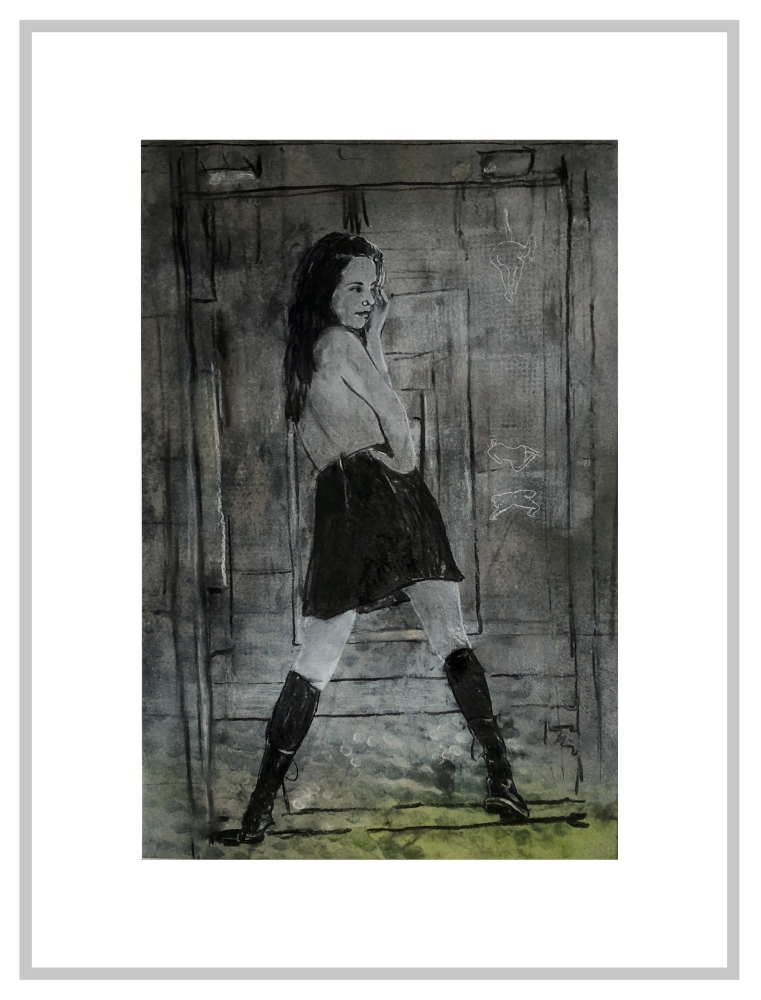 Cette uvre, créée après la collaboration avec le mannequin Mira, est une pose sous les piliers d'un pont de pierre. L'uvre est une technique mixte sur papier dans un cadre en aluminium sous verre. En raison de la liste, le prix minimum est plus élevé qu'avant avec mes autres travaux.