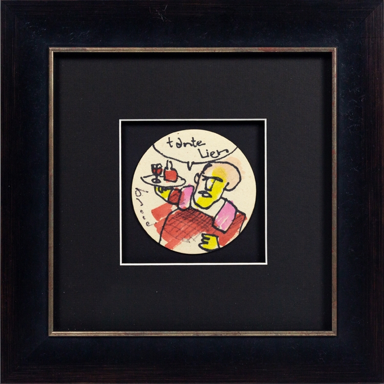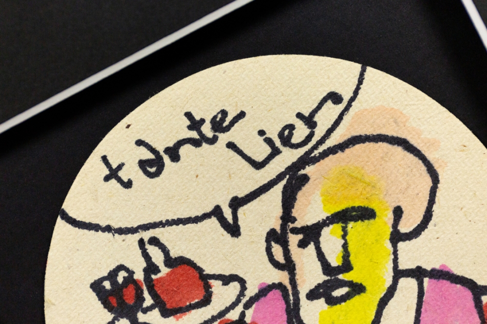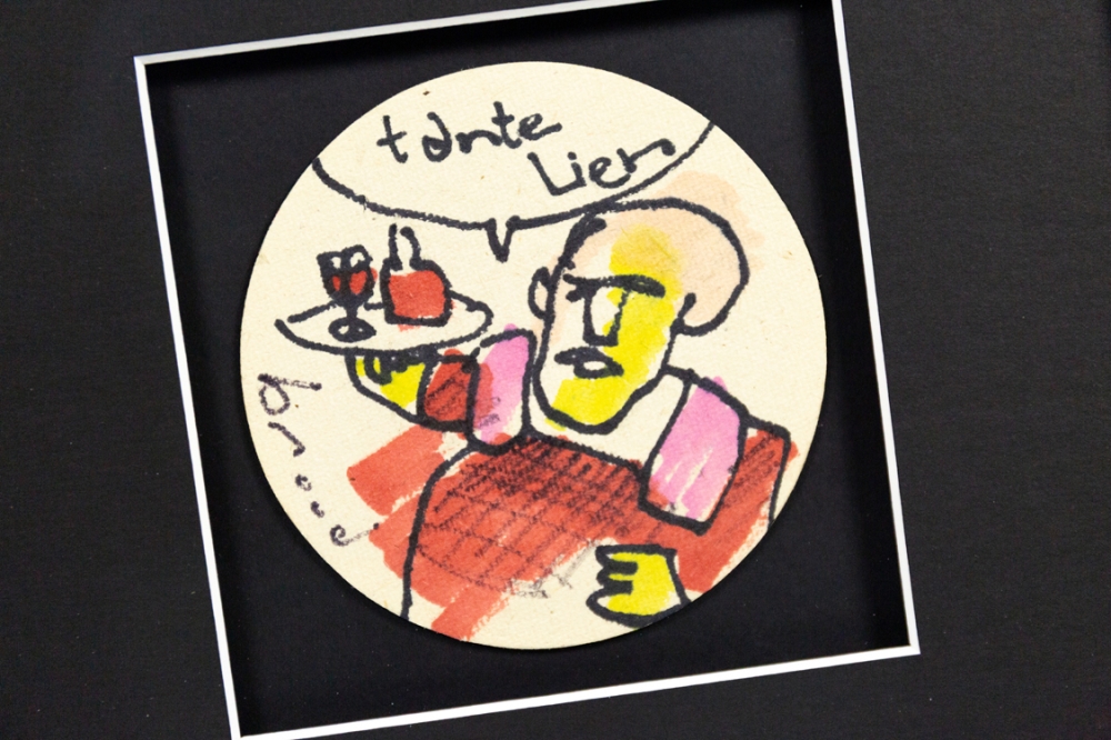 Carte de bière ou sous-verre de Herman Brood , dessiné à la main et signé par l'artiste.