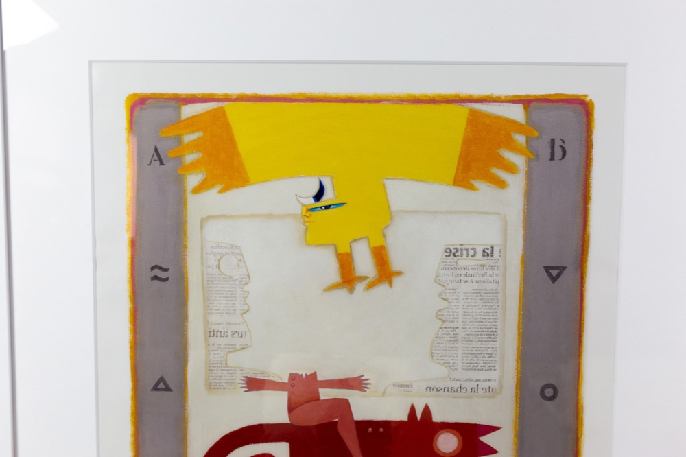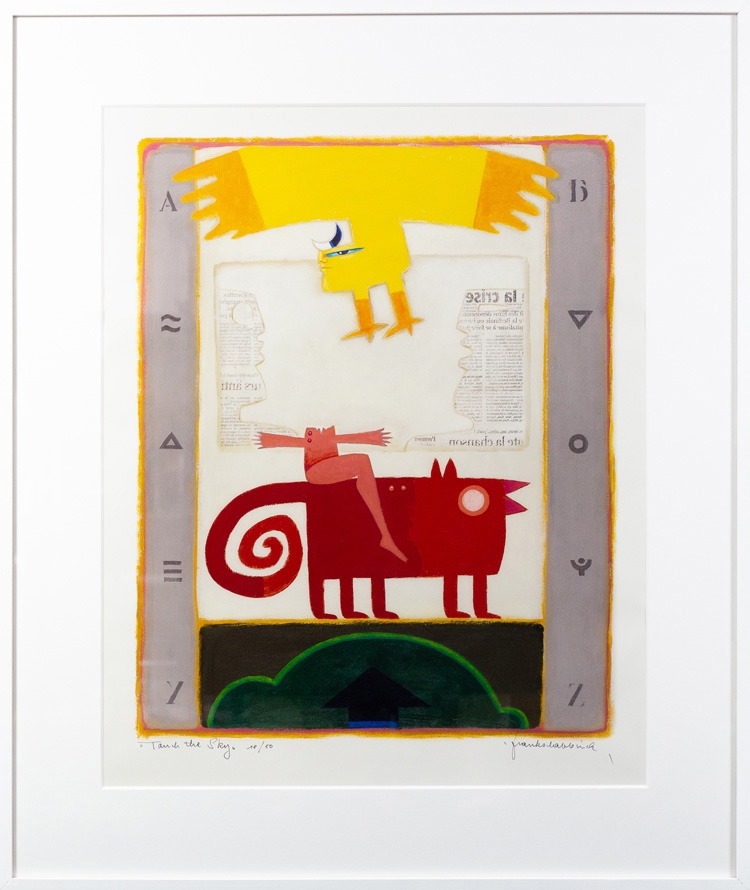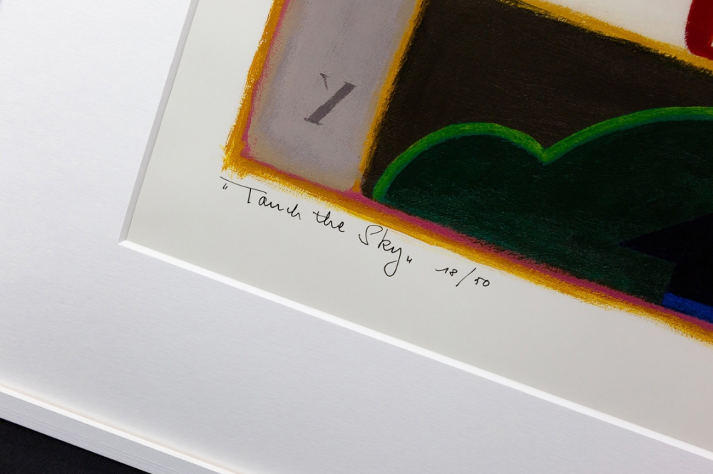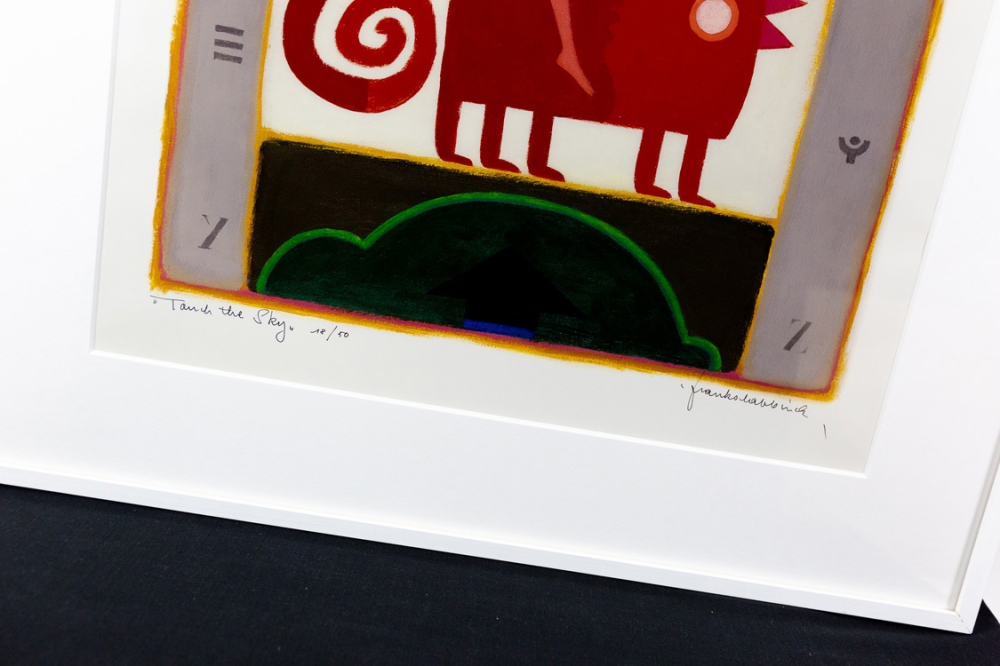 Encadré dans un sobre cadre en bois blanc avec verre anti-UV, en excellent état.
