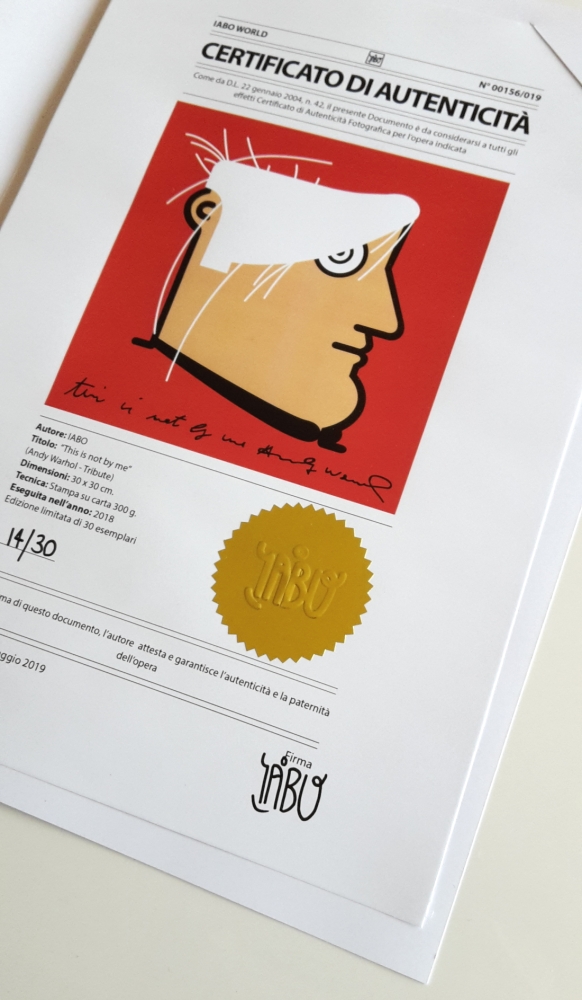 Impression offset numérique sur papier Fedrigoni 300g. Tirage limité à 30 exemplaires dont celui-ci est le numéro 14. Dimensions hors tout : 30 x 30 cm. Estampillé, numéroté et signé à la main par l'artiste avec certificat d'authenticité (COA). La liste n'est pas inclusif. A première vue, IABO (Naples, 1980) s'inspire du pop art des années 1980. Il explore la ligne et étudie sa forme. Et il en fait une véritable obsession, suite à une recherche constante de perfection mécanique, mais de manière artisanale. En IABO, la frontière homme/machine est très mince. Ses créations sont techniquement parfaites. Une obsession qui l'a conduit à expérimenter et à configurer un langage très personnel.