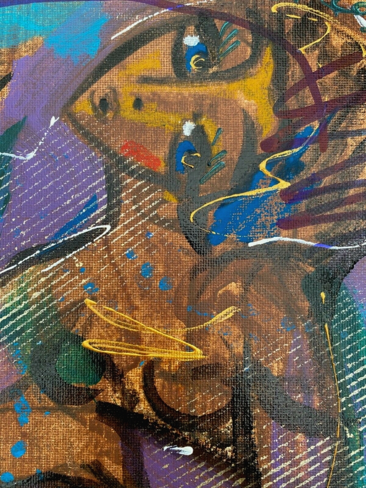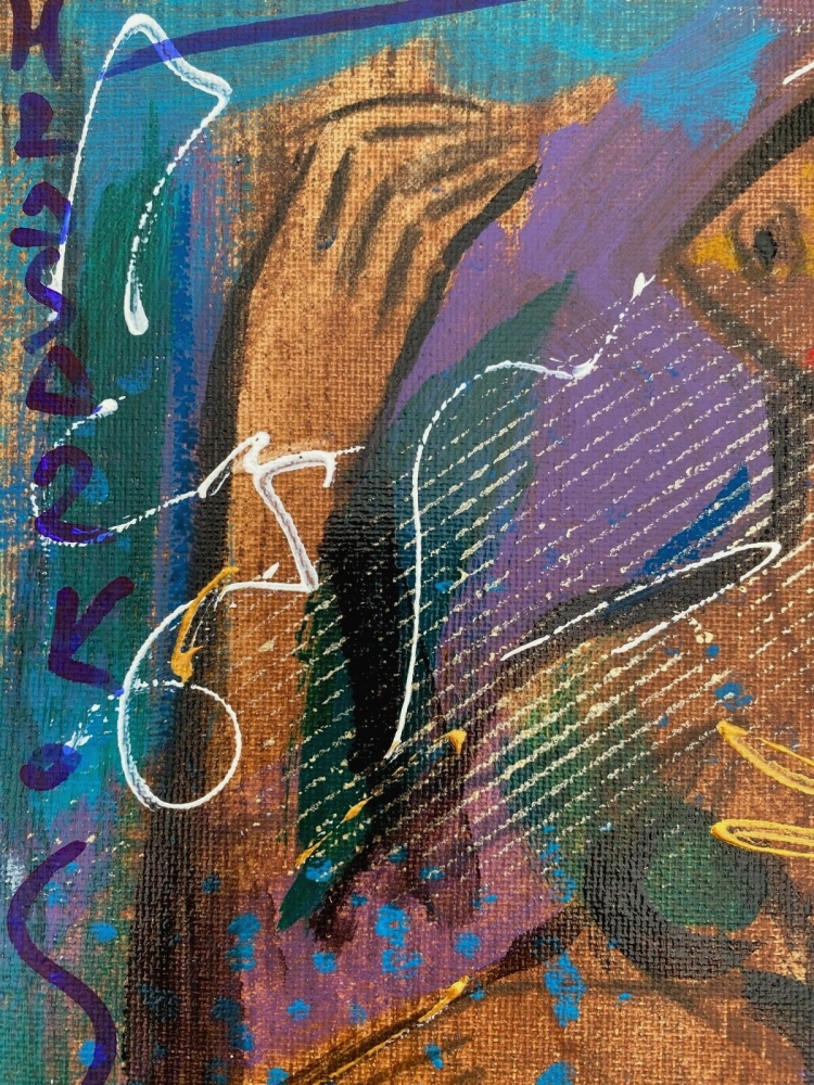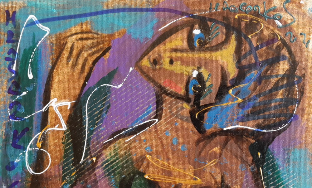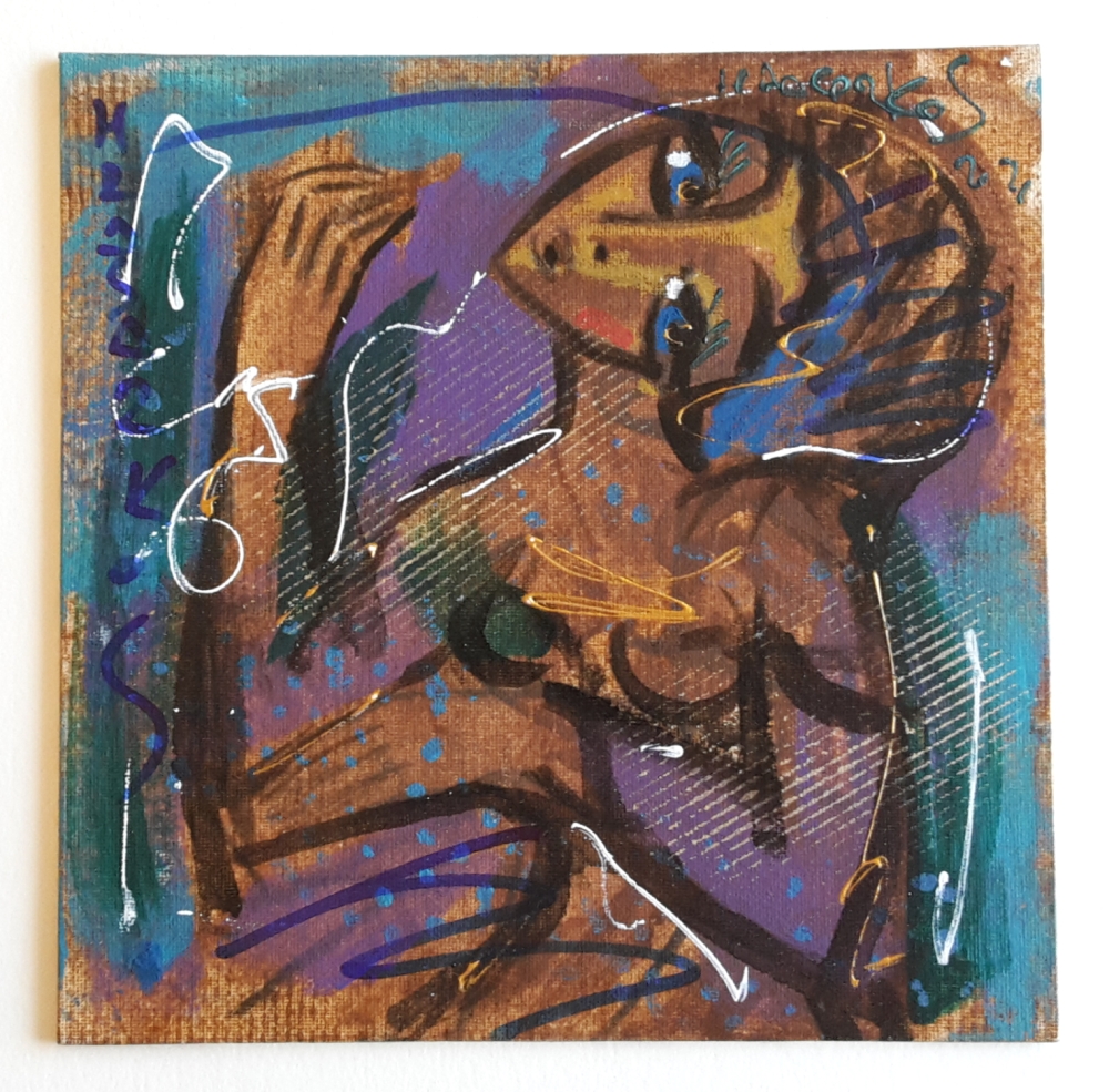 Hrasarkos - ‘Danse mouvement’ – peinture à l'huile avec techniques mixtes – toile de lin appliquée sur un support épais et solide (carton entoilé) (artboard). Signé à la main – 2021; en plus signé avec un marqueur au dos. Dimensions: 25 x 25 cm. Oeuvre unique. COA est inclus.