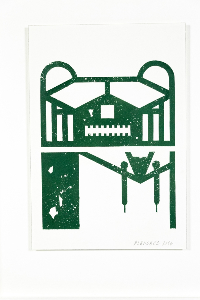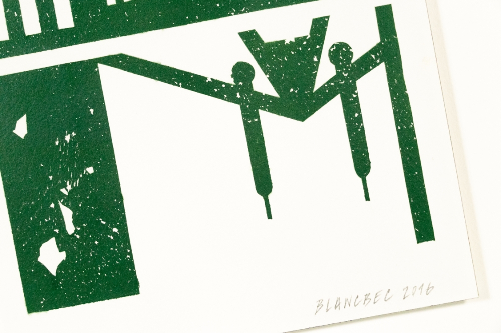 Dessin/peinture original sur papier signé et daté au crayon par Blanbec. Cette oeuvre fait partie de l'exposition "Trafik" de 2016.