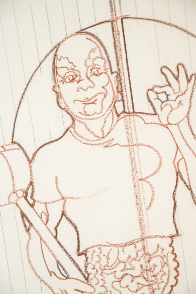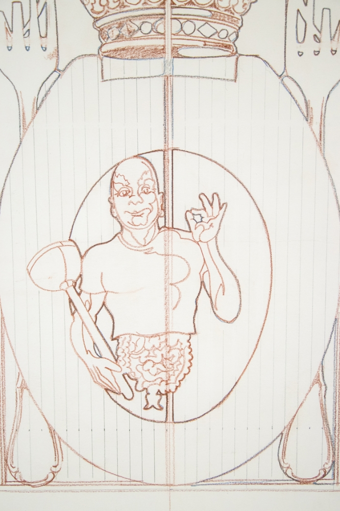 Dessin original de Wim Delvoye. Le travail est inclus dans le livre Études pour cloaque. Cette uvre fait ainsi référence à l'une des uvres les plus célèbres de Delvoye. Le design a également été utilisé dans ses uvres "gates" de 2005
