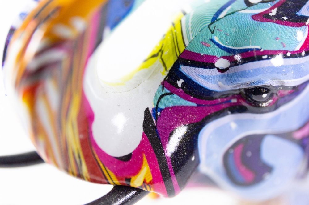L'arrière-plan est appliqué à l'aide hydrographie ou impression par transfert d'eau. Certains endroits ne se sont pas parfaitement déroulés.
