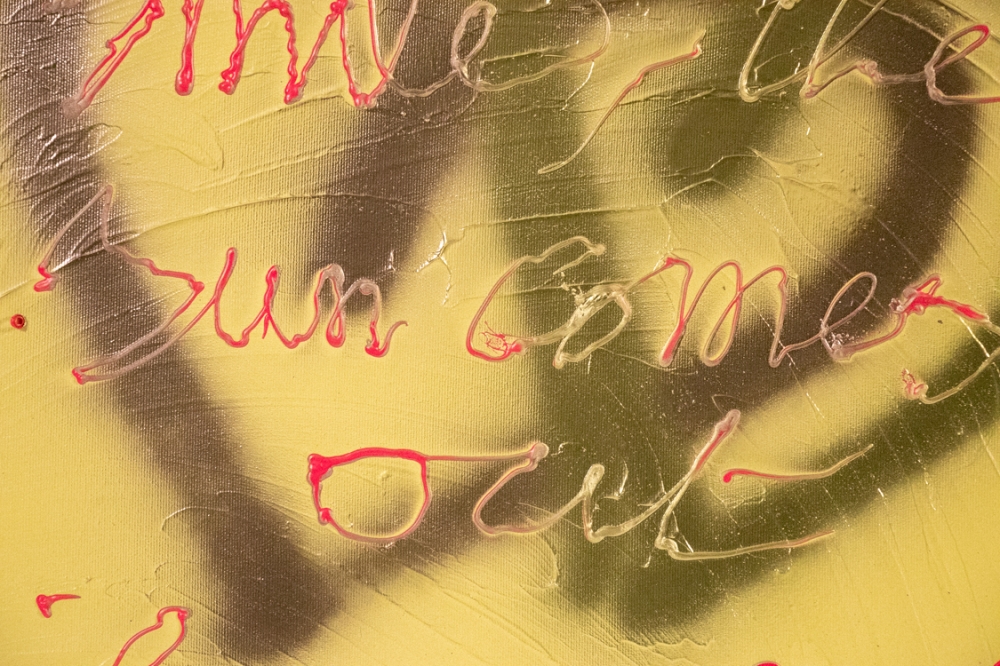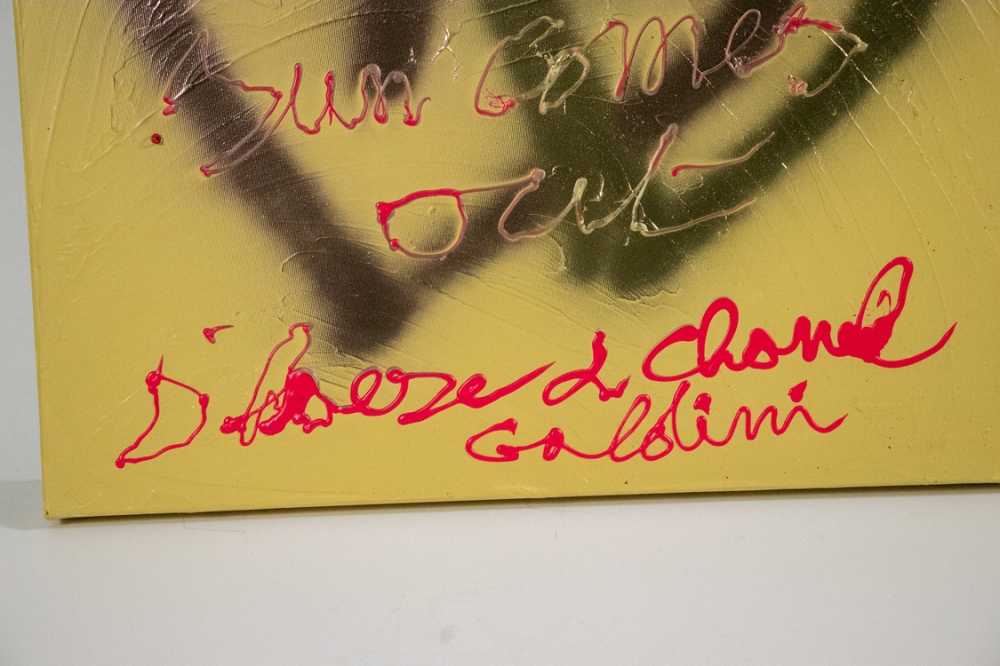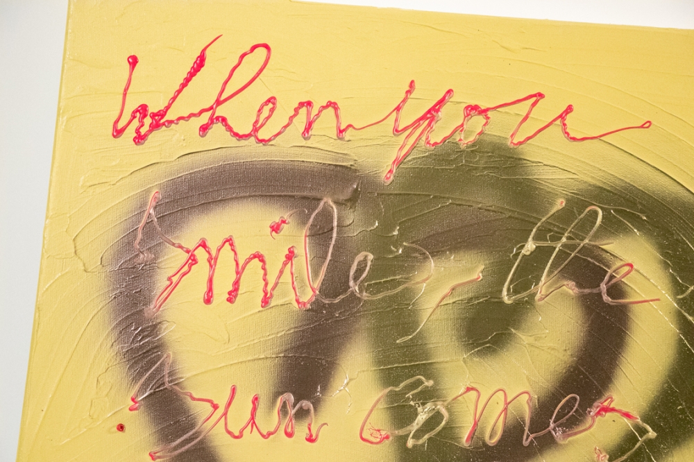 Peinture acrylique de Hannes D'haese et Chanel Galdini. Signé à la main par les deux artistes. L'inscription se lit comme suit : "Quand vous souriez, le soleil sort".