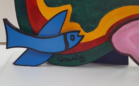 Sculpture de Guillaume Corneille, en bois, limitée à 60 pièces. Signée à la main par l'artiste.