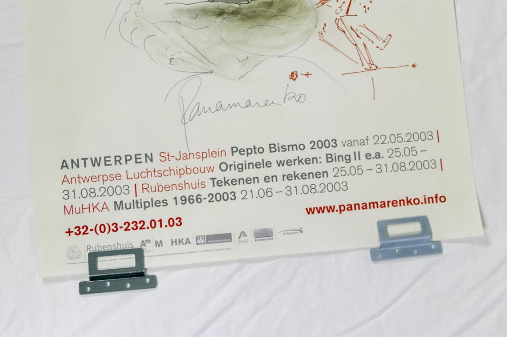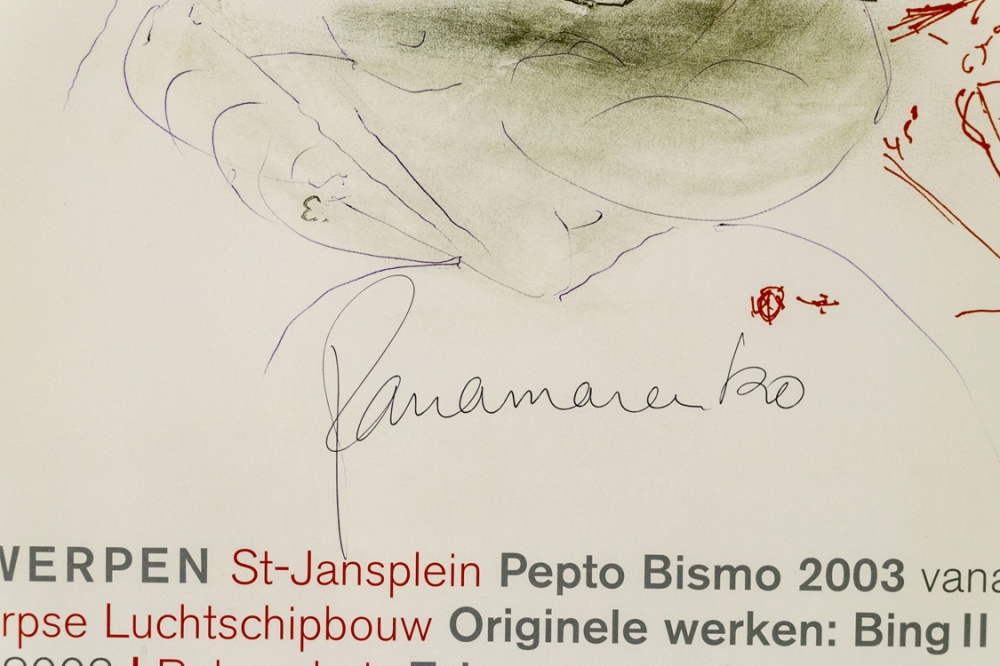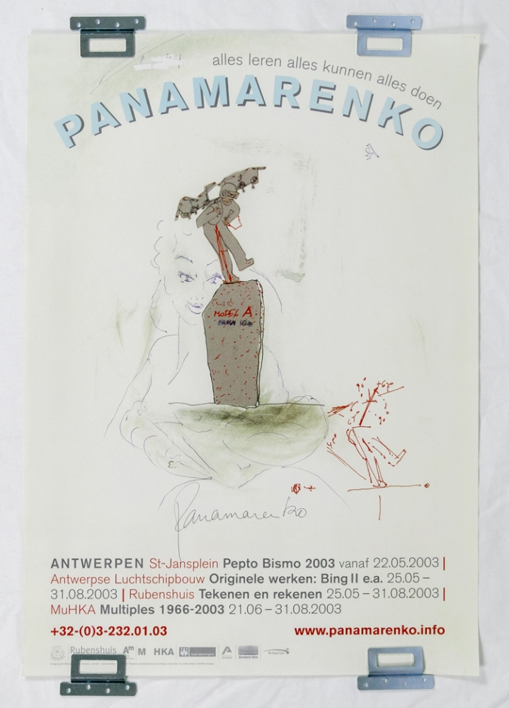 Affiche de Panamarenko, signée à la main par l'artiste. L'affiche est sortie à l'occasion de plusieurs expositions à Anvers en 2003.