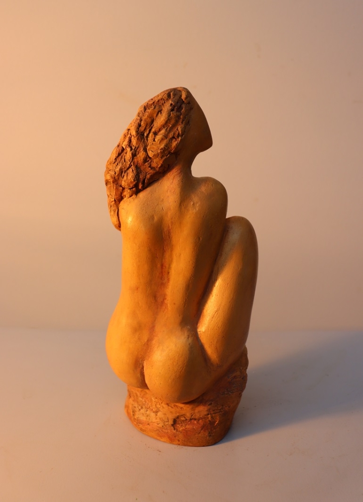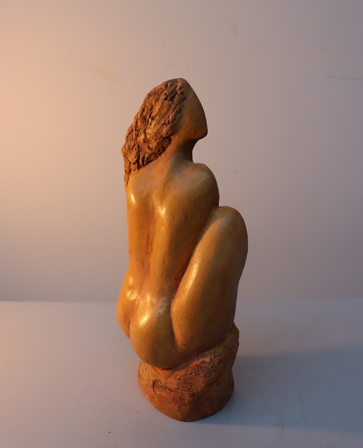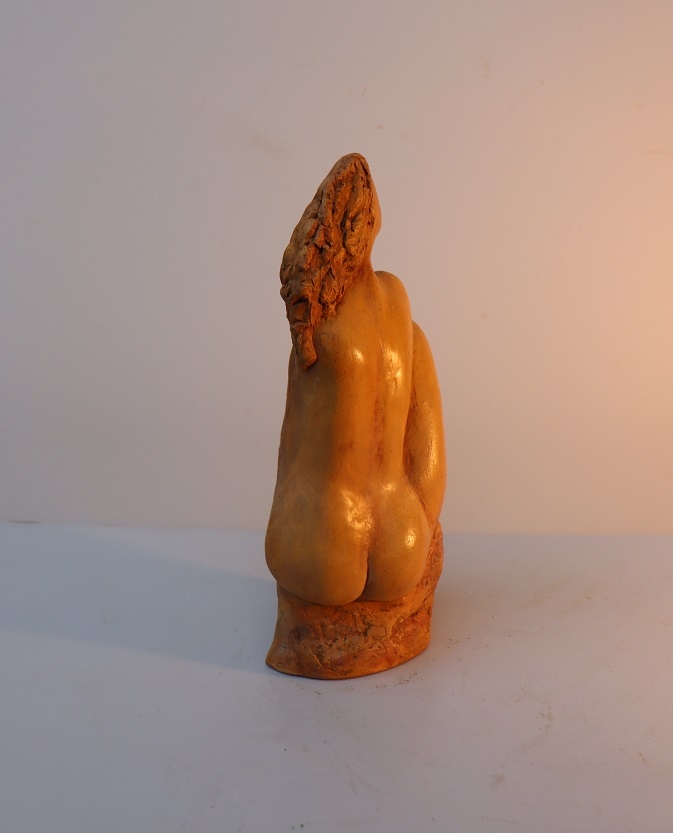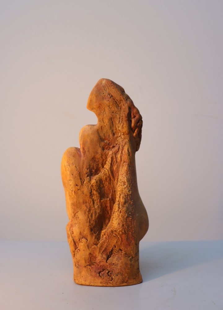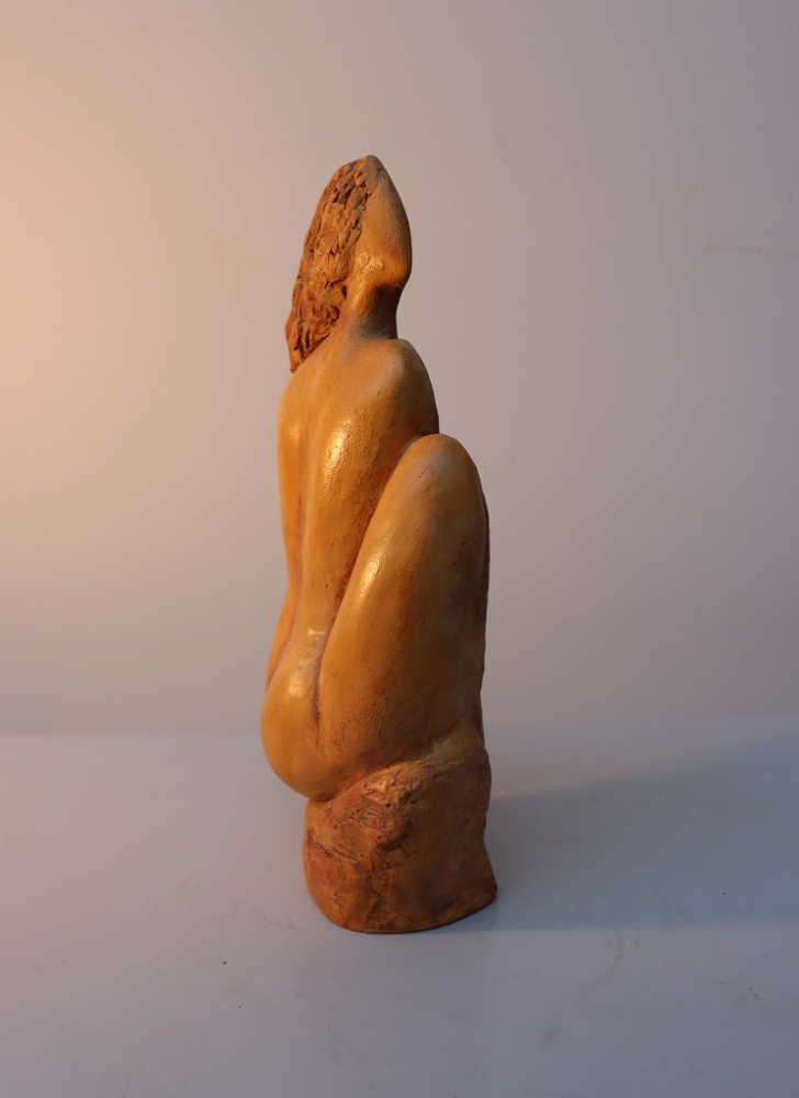 Silence Gepolijst steengoed Gewicht 1.9 kg Ook geschikt voor buiten Chantalle Smeets is na 4 jaar WIK (Wet Inkomensondersteuning Kunstenaars) in Nederland 20 jaar actief als professioneel kunstenaar. Samen met Martiene Stevens (haar partner en tevens kunstenaar) beheren zij Kunsthuis Trobar Riemst (B). In deze jaren ontwikkelde Chantalle Smeets haar eigen stijl, die zichtbaar is in haar sculpturen van brons, steen, keramiek en hout. Haar inspiratiebron is de natuur. Ze heeft geëxposeerd bij verschillende galeries en kastelen (ook beeldentuinen) in Nederland, België en Spanje. Naast haar sculpturen in verschillende formaten exposeert ze ook schilderijen op doek en panelen met mixed media.