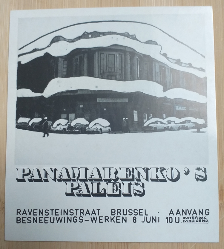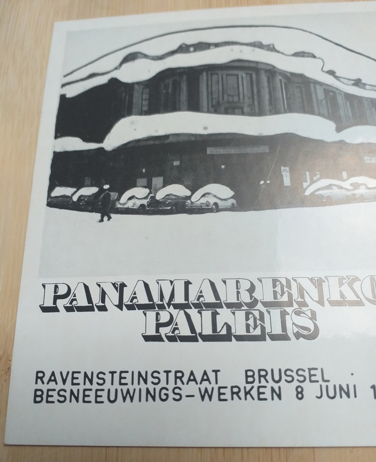 Dit is een uitnodigingskaart voor Panamarenkos Paleis. Panamarenko zou echter nooit de toelating krijgen het te laten doorgaan waardoor dit kaartje het enige is wat er van overblijft. In perfecte staat en met de hand gesigneerd.
