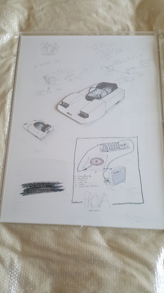 Panamarenko "Prova Car II" est un collage. L'uvre se trouve dans une boîte en plexi de 5 cm d'épaisseur. Un système de suspension est fixé à l'arrière. Le collage est signé et numéroté par l'artiste sur 75 exemplaires + 25 romans.