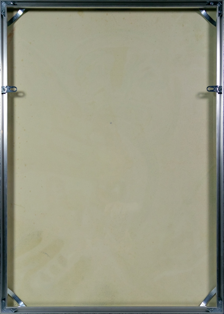 Werk is in uitstekende staat, ook ingelijst in een degelijk aluminium frame met matte beglazing (weerspiegelingen of reflecties zijn mat). Lijst in uitstekende staat.