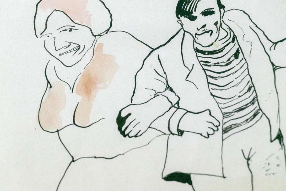 Aquaerel en zwarte inkt tekening van Lucebert, gesigneerd en gedateerd in grijs potlood 'Lucebert 82.XI.13'