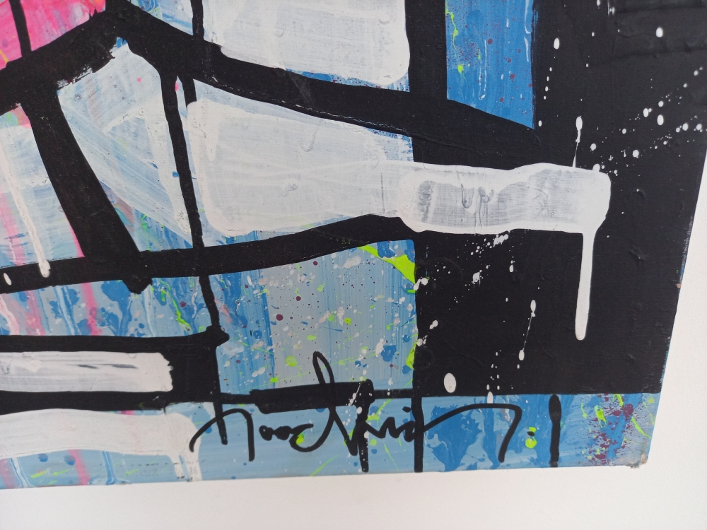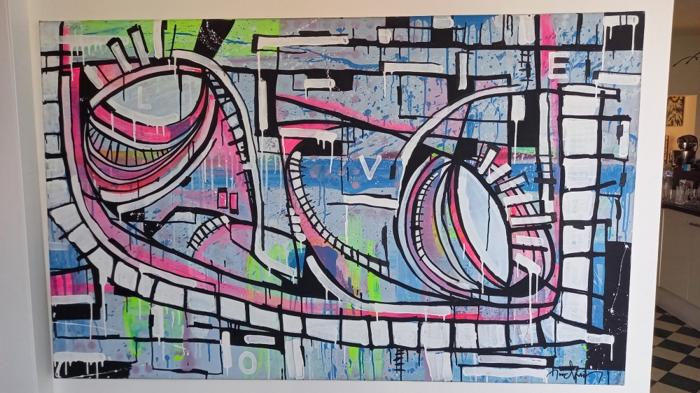 Belle oeuvre de Joachim sur toile. Cette uvre s'intitule Love et provient de sa première exposition à la galerie Aim Space à Anvers. Joachim se trouve aujourd'hui à Londres etc;
