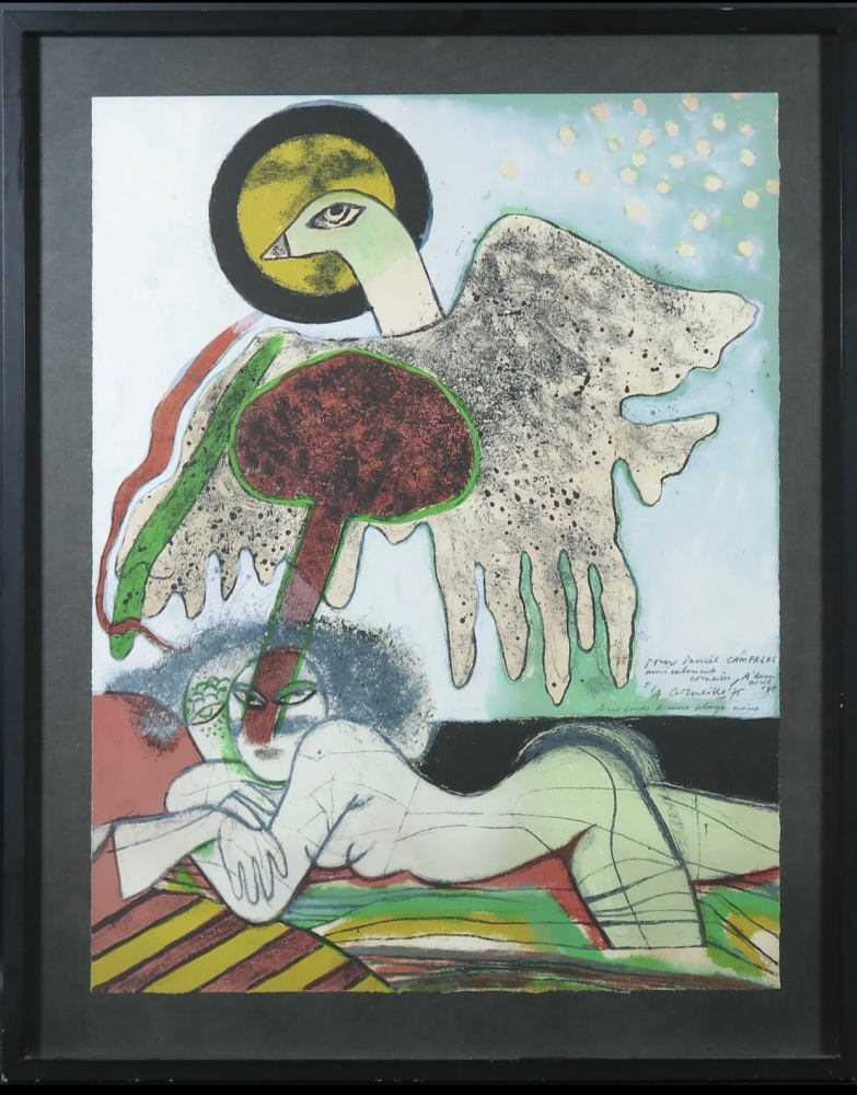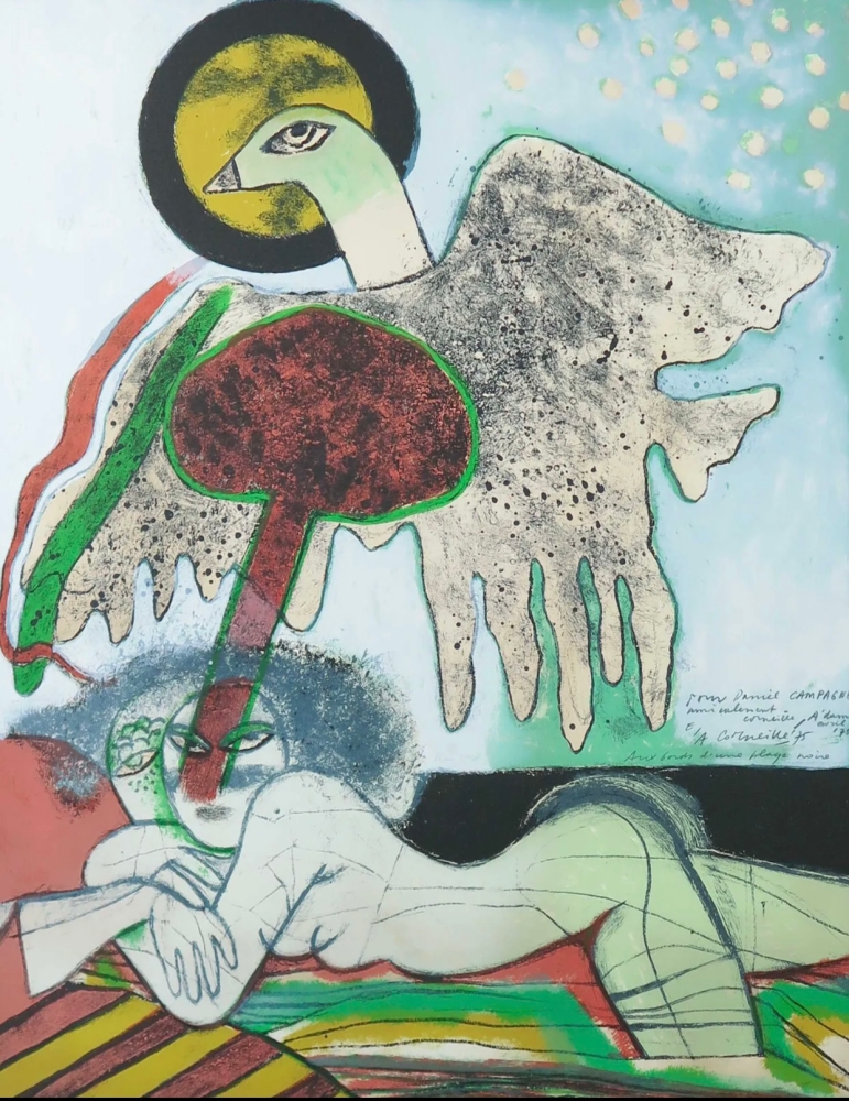 Belle lithographie de Guillaume Corneille. Signé à la main et daté 1975.