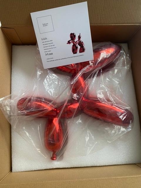 Grand chien ballon (XXL) des Editions Studio, d'après une statue de Jeff Koons. L'oeuvre sera livrée avec le coffret et le certificat des Editions Studio. Dans une édition de 999. Très bonne condition.