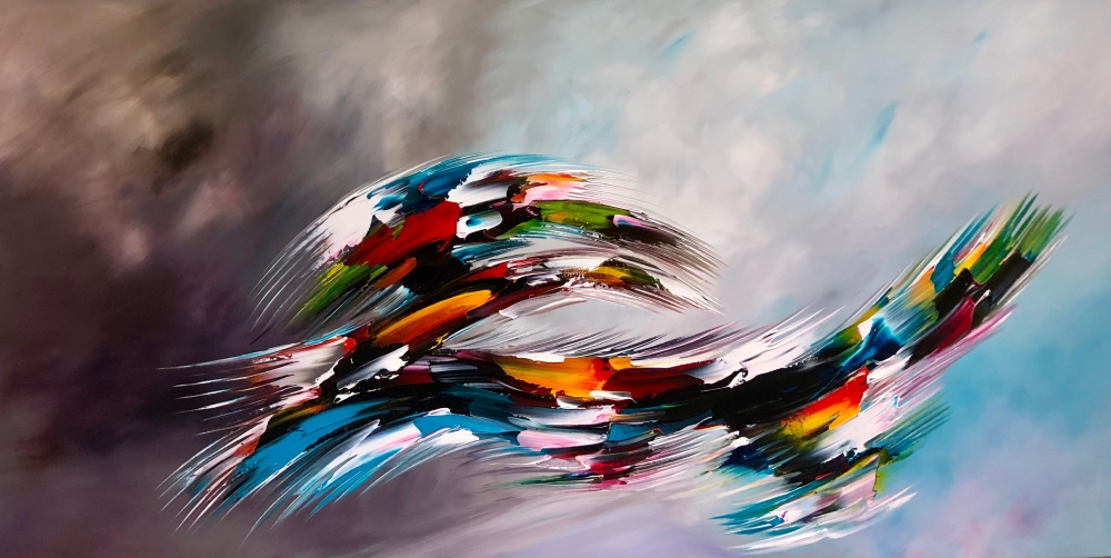 Peinture originale de l'artiste Gena. Livré avec un certificat d'authenticité. Peinture acrylique Amsterdam sur toile. Les côtés sont peints, donc aucun cadre n'est nécessaire pour accrocher immédiatement. La peinture a une couche de vernis, donc une protection supplémentaire contre la poussière, la saleté et l'humidité ! Format 70x140cm3D