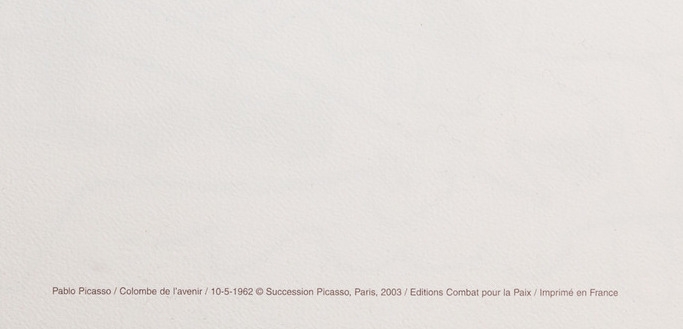 pablo picasso / colombé de l'avenir / 10-5-1962 succession picasso, paris 2003 / édition combat pour le prix / imprime en france