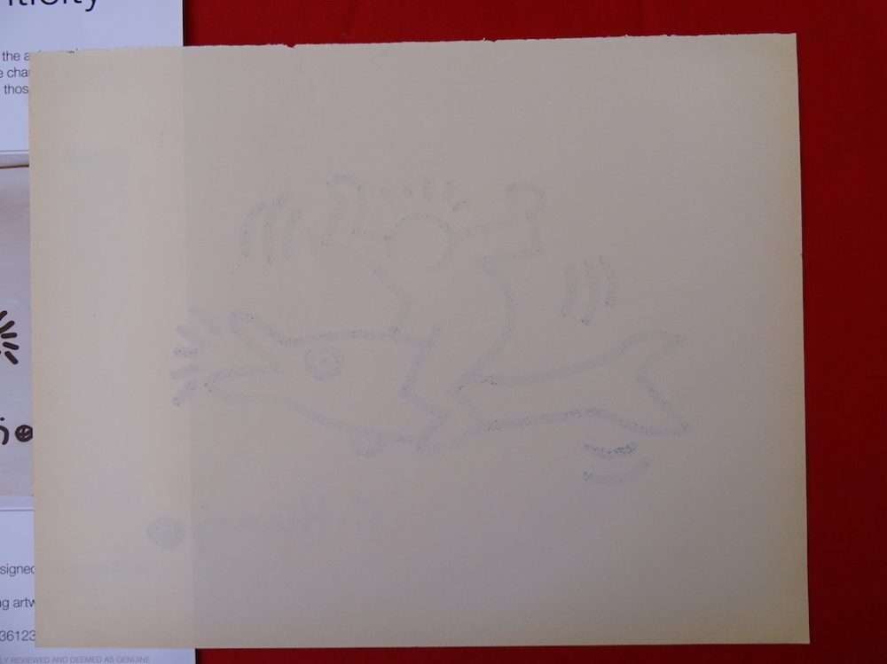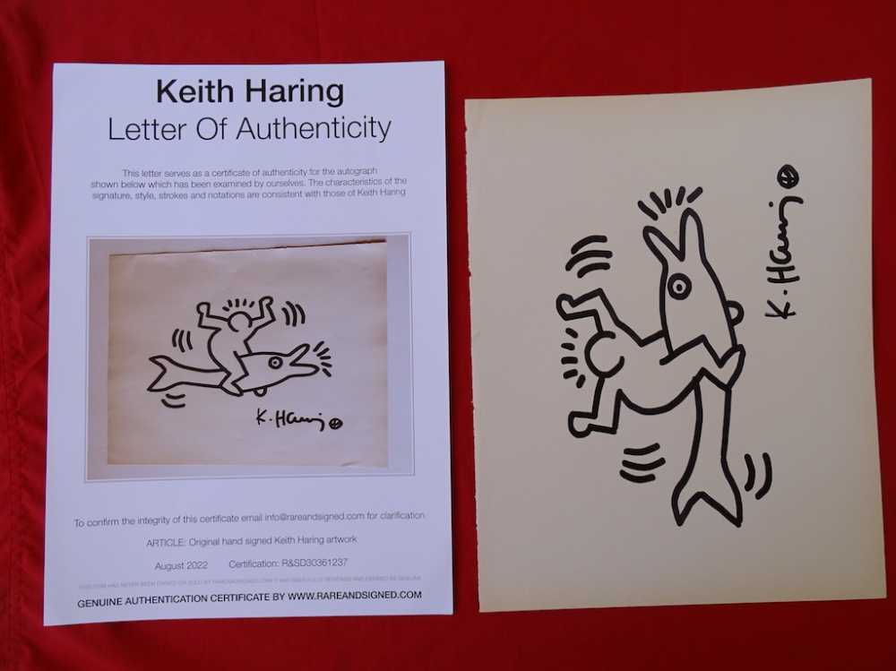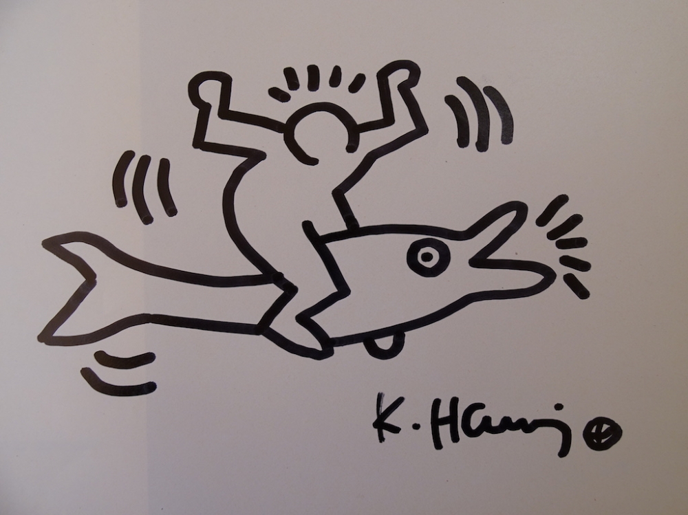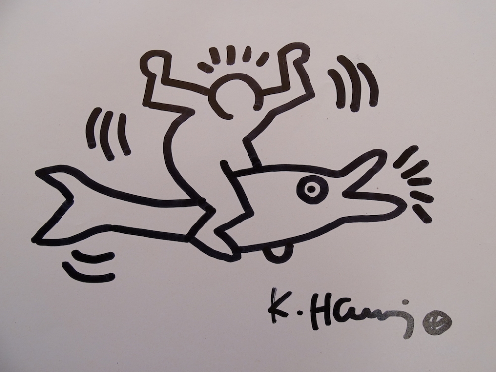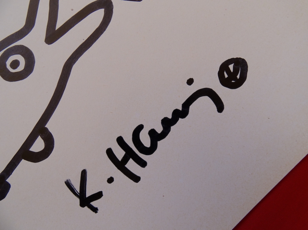 Keith Haring (attributed), ink drawing Keith Allen Haring (May 4, 1958 February 16, 1990) was an American artist whose pop art emerged from the New York City graffiti subculture of the 1980s. His animated imagery has "become a widely recognized visual language".[2] Much of his work includes sexual allusions that turned into social activism by using the images to advocate for safe sex and AIDS awareness. In addition to solo gallery exhibitions, he participated in renowned national and international group shows such as documenta in Kassel, the Whitney Biennial in New York, the São Paulo Biennial, and the Venice Biennale. The Whitney Museum held a retrospective of his art in 1997.