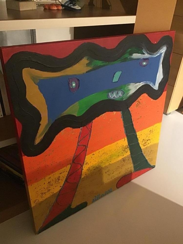 Première oeuvre originale acrylique sur toile de Hannes D'Haese.... est un artiste belge né en 1965 à Furnes. Il est plasticien et peintre. Fils de la sculptrice Begga D'Haese. Extrait de la presse : « En parcourant le monde de Los Angeles à Bora-Bora et de Rotterdam à Londres, il se découvre en tant qu'artiste. Inspiré par des artistes Cobra tels que Karel Appel et Asger Jorn, il a créé son propre style unique et donne une nouvelle tournure à l'art moderne. Ses paroles sont le reflet de ses expériences personnelles et de celles d'autres personnes. Expose à la State of Art Gallery de Londres en 2005 et 2006, à la Marine Gallery de Zeebrugge en 2008.