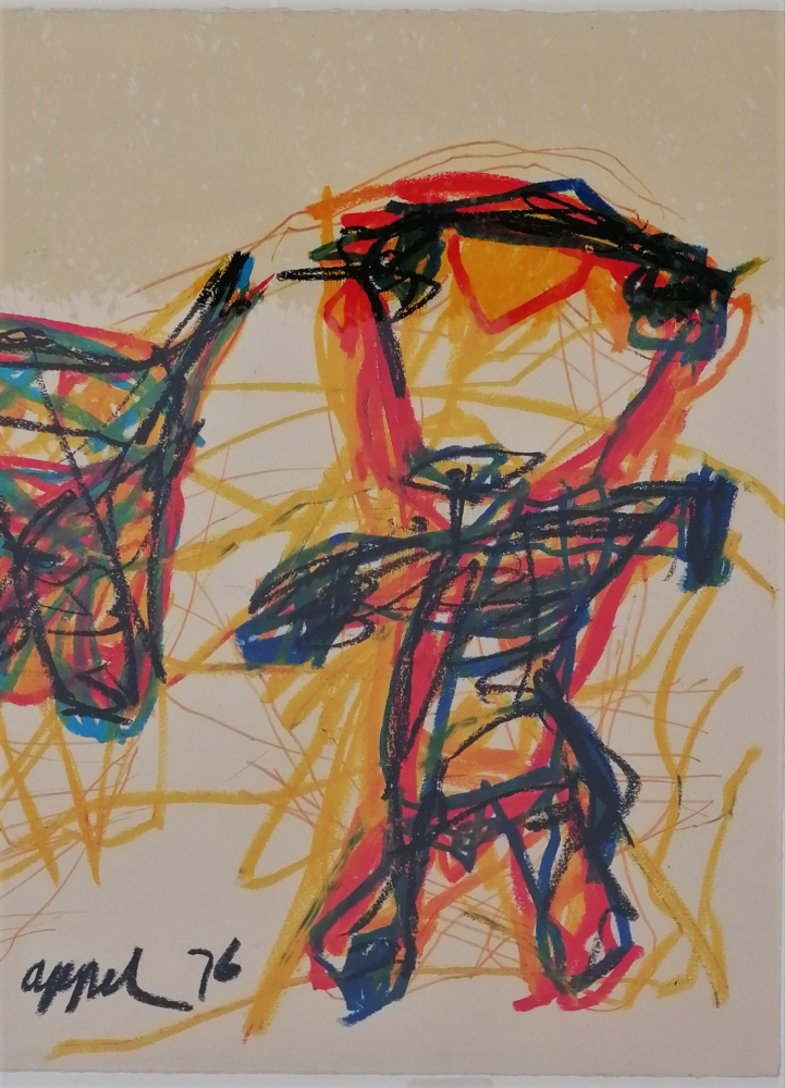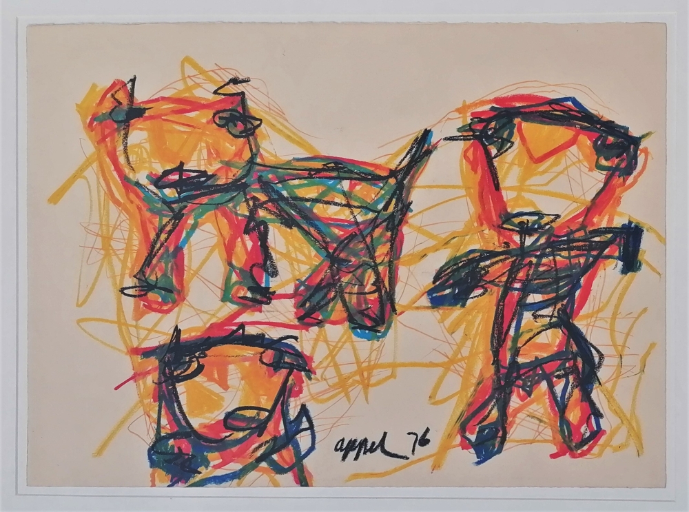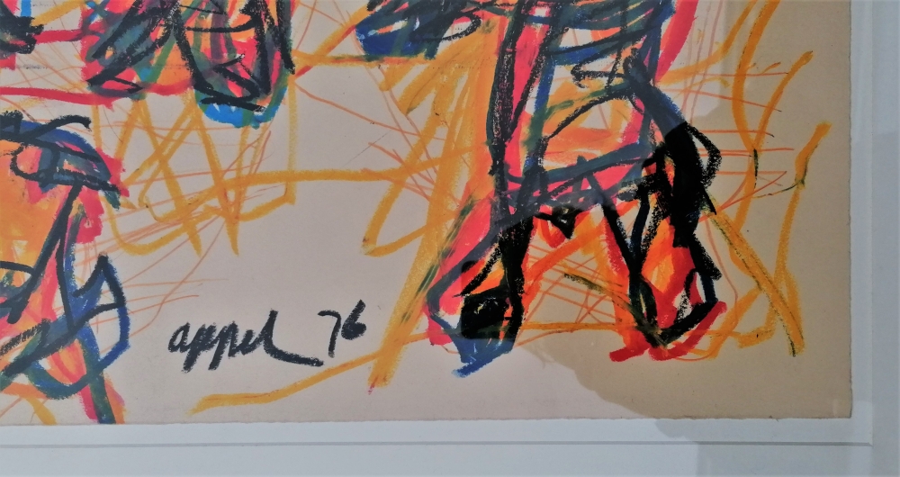 Charles APPEL (1921 -2006) (apres) dessin à la craie sur papier; de trois chiffres dimensions 45 x 63 cm, Dimensions avec passe-partout cadre noir. environ. 65 x 83 cm Signé avec la date 1976 en bas au centre du dessin