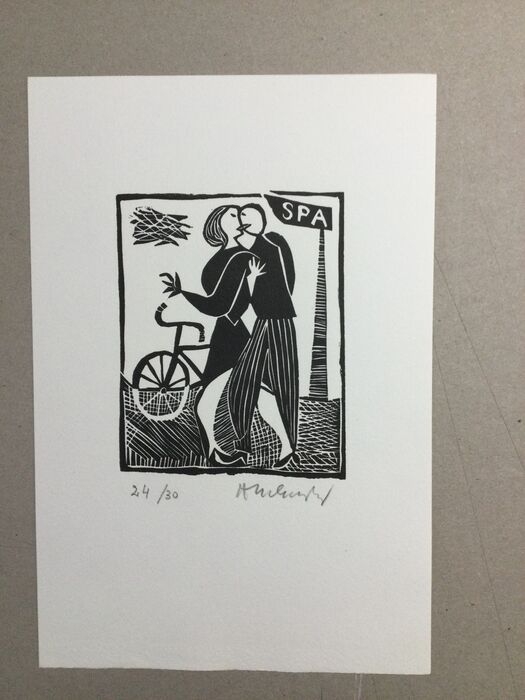 De tekst van 'Le poète assasiné' is het allereerste werk waar Alechinsky illustraties bij tekende. Dit in 1948, tijdens zijn studies in La Cambre (Brussel). In totaal omvat deze uitgave 18 linosnedes van Alechinsky. Dit is er één van (zie ook andere kavels) Elke linosnede is gesigneerd en genummerd in potlood door de kunstenaar. Uitgegeven op slechts 30 exemplaren. Zeldzaam werk. Een uniek en historisch erg belangrijk werk van de nu 95-jarige Pierre Alechinsky. Le poète assassiné est le premier texte quillustra Pierre Alechinsky, avec ces dix-huit linogravures, en 1948, au terme de sa formation à lécole de la Cambre, mais le livre ne fut jamais publié. Ce conte autobiographique, paru pour la première fois en 1916 mais écrit avant la guerre, raconte lhistoire du poète Croniamantal, dabord adulé par tous, puis lynché lors dun mouvement de haine général contre la poésie et les poètes.