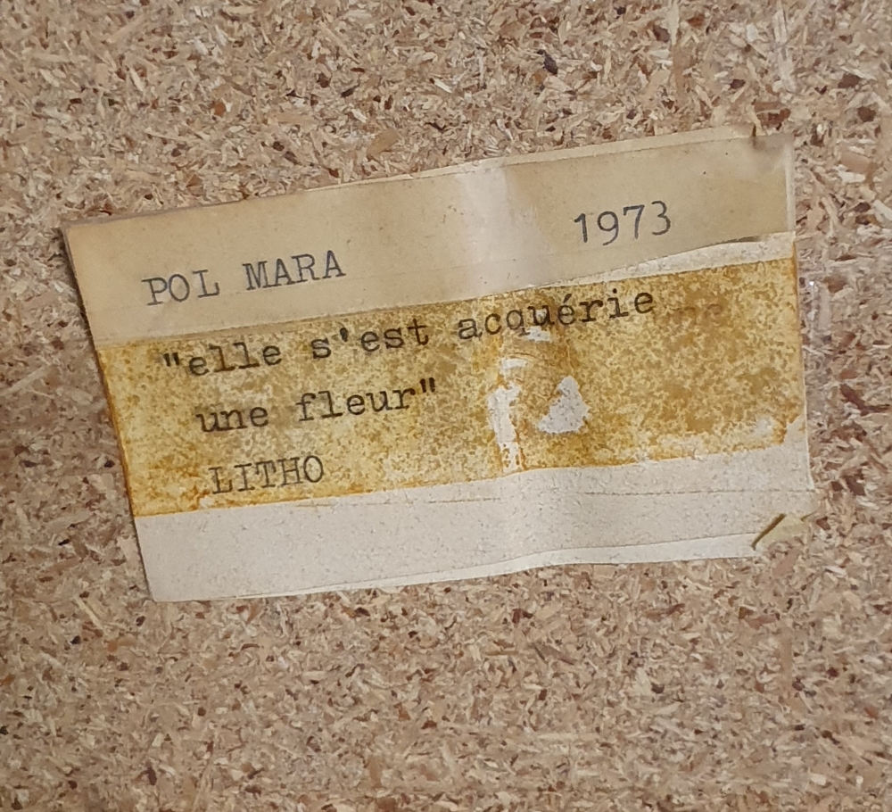 Belle lithographie de l'artiste belge Pol Mara sur papier Steinbach. L'uvre est encadrée dans un cadre en aluminium typique. L'oeuvre est signée au crayon. L'ouvrage est en bon état. Le cadre présente quelques rayures. L'oeuvre a été achetée directement à Gordes où Pol Mara a vécu et travaillé.