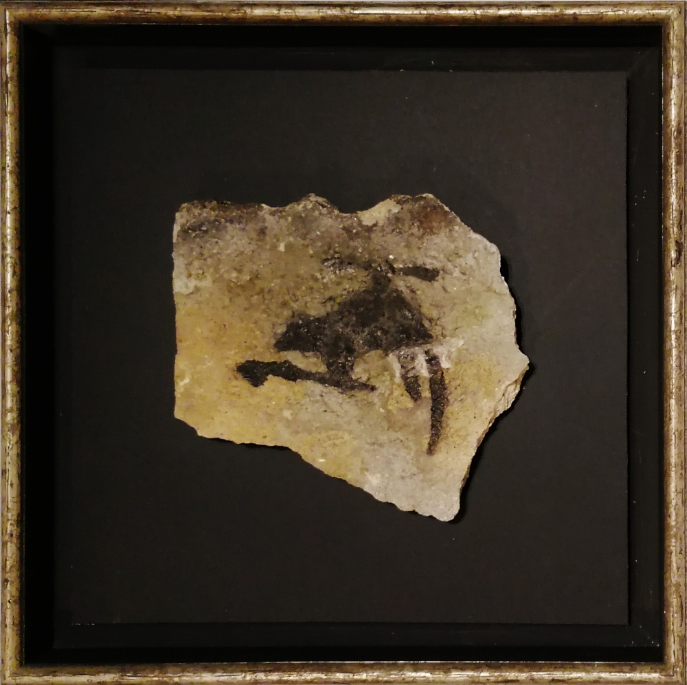 Banksy a attribué une uvre unique à un morceau de façade. C'est un rat d'hélicoptère en peinture noire en aérosol Les dimensions sont d'environ 21 x 23 cm. Monté dans un cadre 3D aux dimensions totales de 45 x 45 cm.