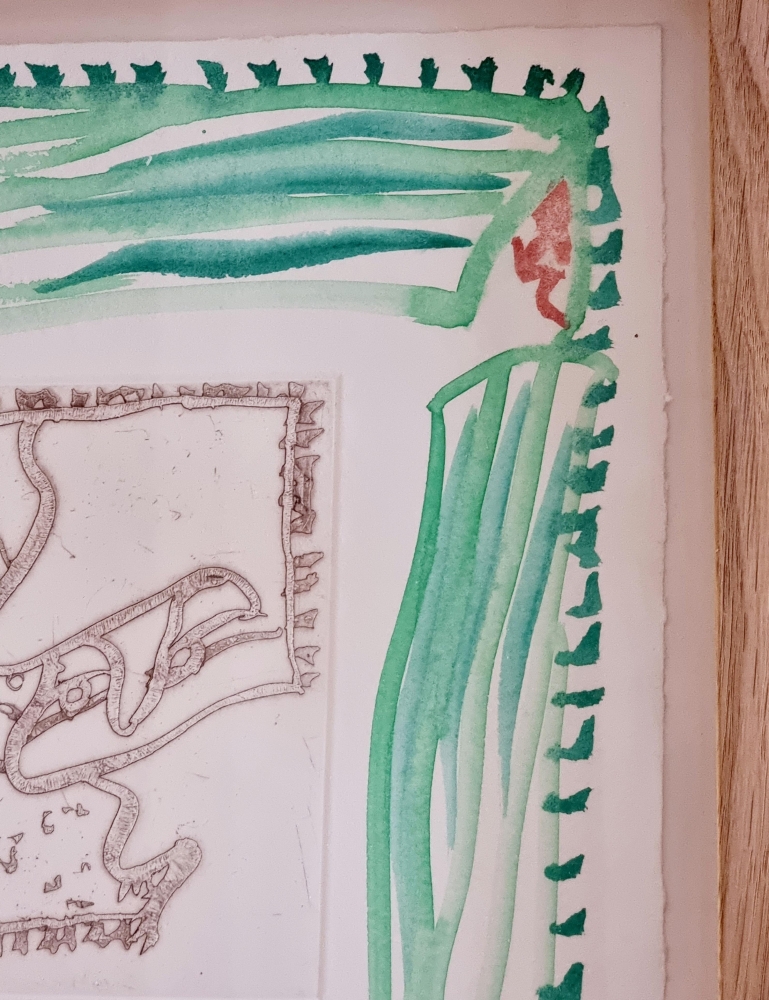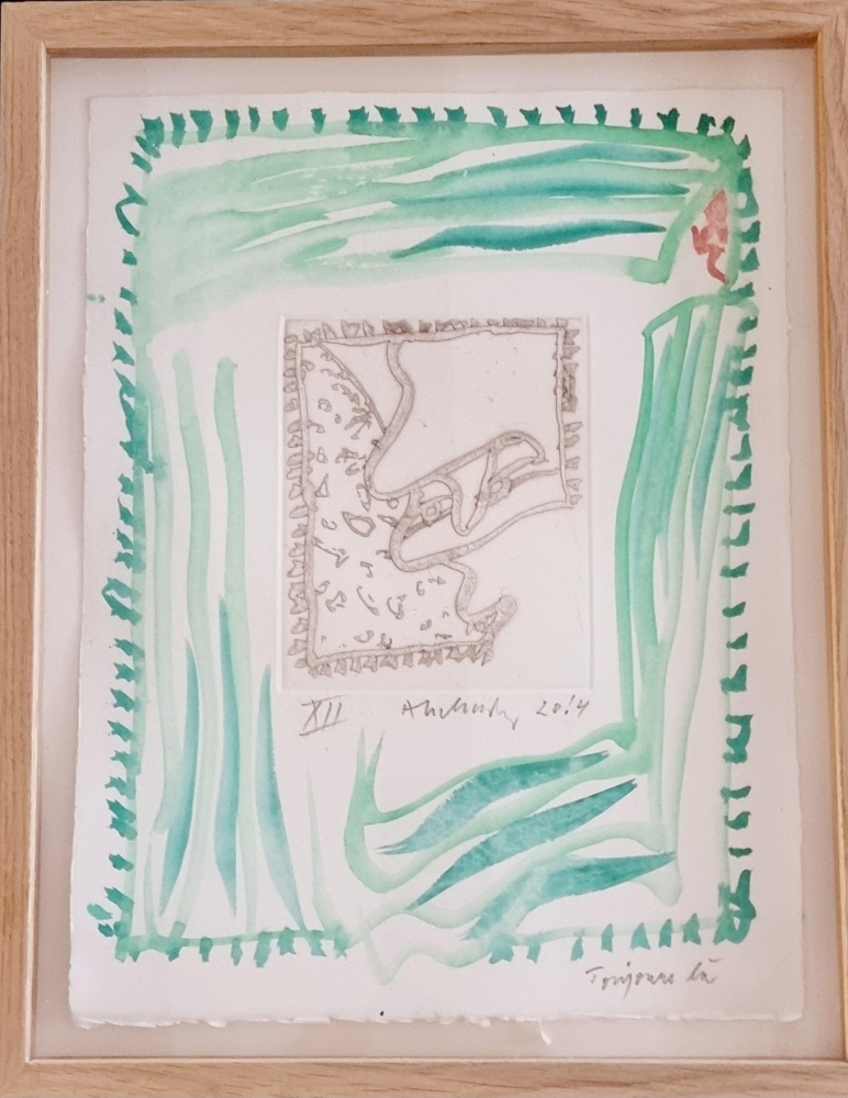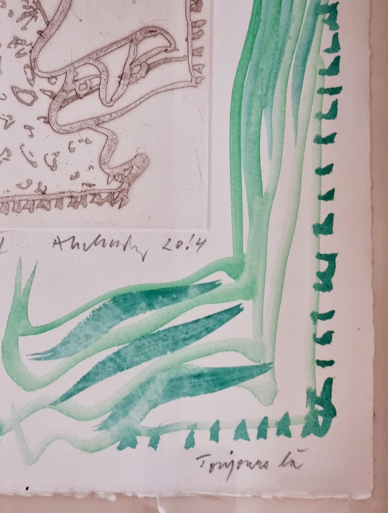 Origineel werk van Pierre Alechinsky. Mixed Media: Aquarelle + Ets op vélin d'Arches "Toujours Là VII" Gesigneerd, gedateerd en getiteld in potlood door de kunstenaar Het werk is professioneel ingelijst met een kader in eik. Provenance: Rechtstreeks van de kunstenaar Er is een certificaat beschikbaar