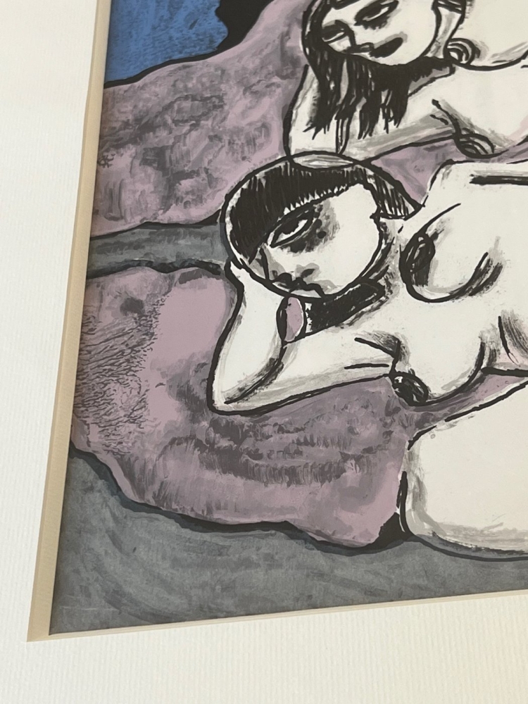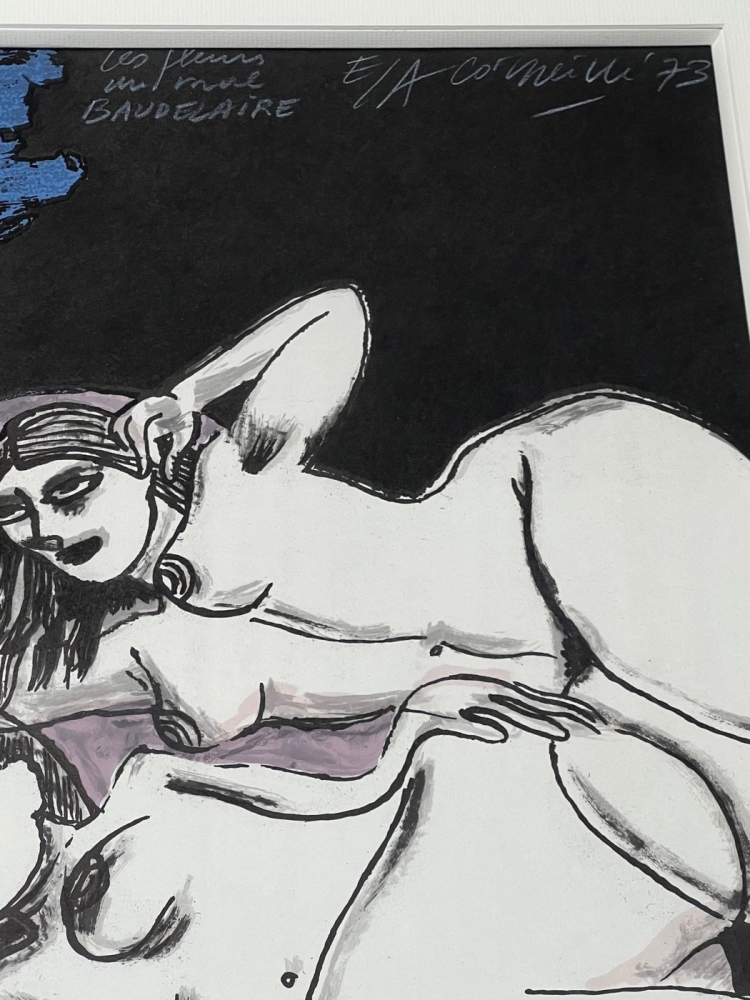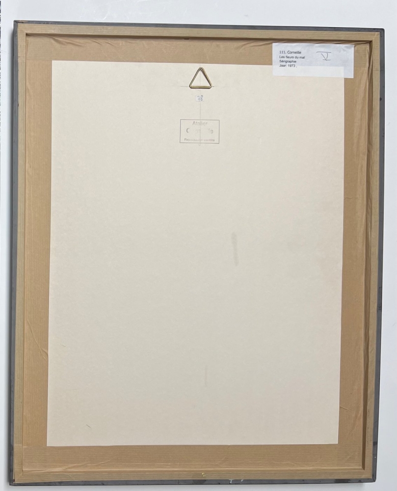 Attention : technique rare d'une sérigraphie lithographiée! Cette épreuve signée et titrée en haut fait partie de l'un des 10 exemplaires d'artistes. Tirage commercial à 100 exemplaires. Belle technique qui donne l'impression d'avoir une aquarelle devant soi. Il s'agit de notre unique exemplaire disponible! Cadre en bois aux bords argentés, réalisé par Corneille de son vivant. Tampon Atelier Corneille au dos. Superbe oeuvre signée, titrée et datée en haut par le peintre. Exemplaire d'artiste E/A Référencée sous le numéro 355 du catalogue raisonné Donkersloot. Sérigraphie lithographiée (couleurs appliquées avec plaques lithographiques) du peintre Guillaume Corneille (1922-2010), né à Liège de parents Néerlandais, membre fondateur du mouvement Cobra. Dimensions totales : 58 x 47 cm - Dimensions de l'oeuvre : 41 x 30 cm. Très bon état, le cadre qui a plus de 20 ans présente des petits impacts et des griffures- Envoi sécurisé avec assurances par UPS dans un coffret cartonné. Envoi sécurisé avec assurances par UPS