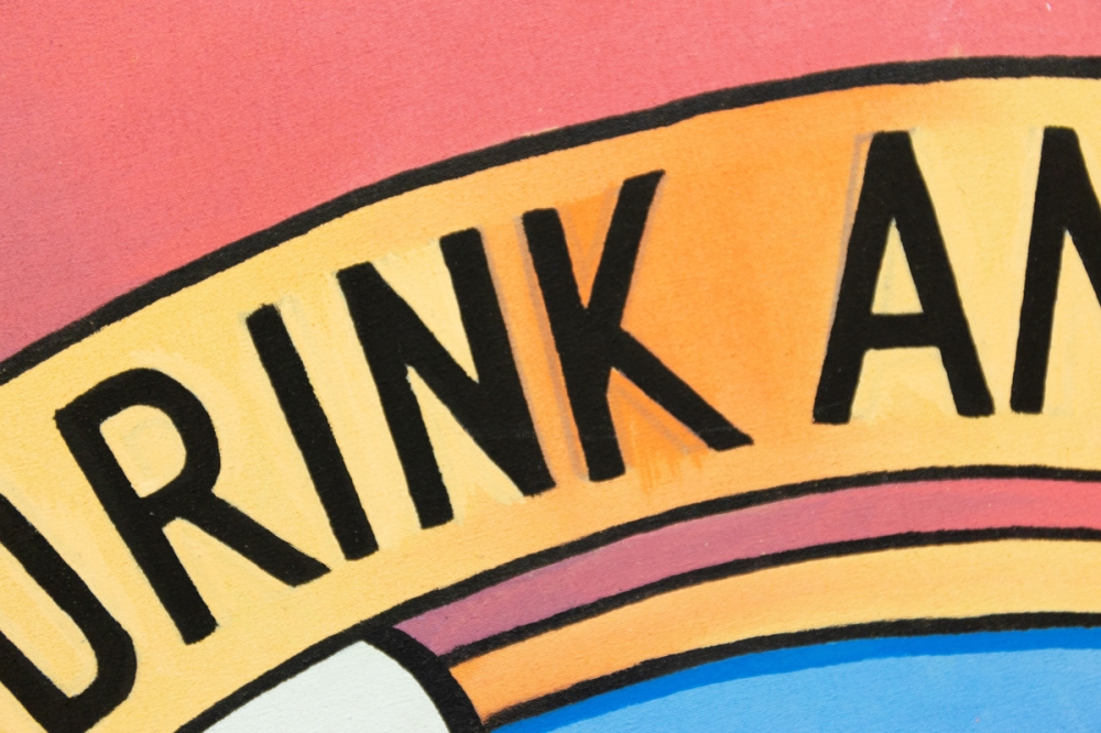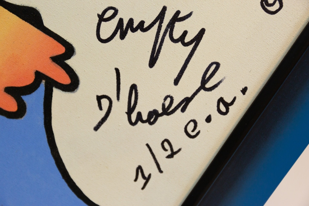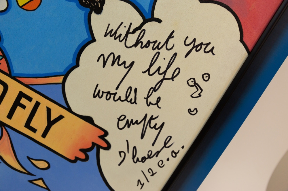 Een vrij onkarakteristiek maar niettemin vrolijk werk van Hannes D'haese. Hit beeld werd overgenomen van een in wereldwijde omloop verspreide poster en aangevuld met een spreuk en handtekening.
