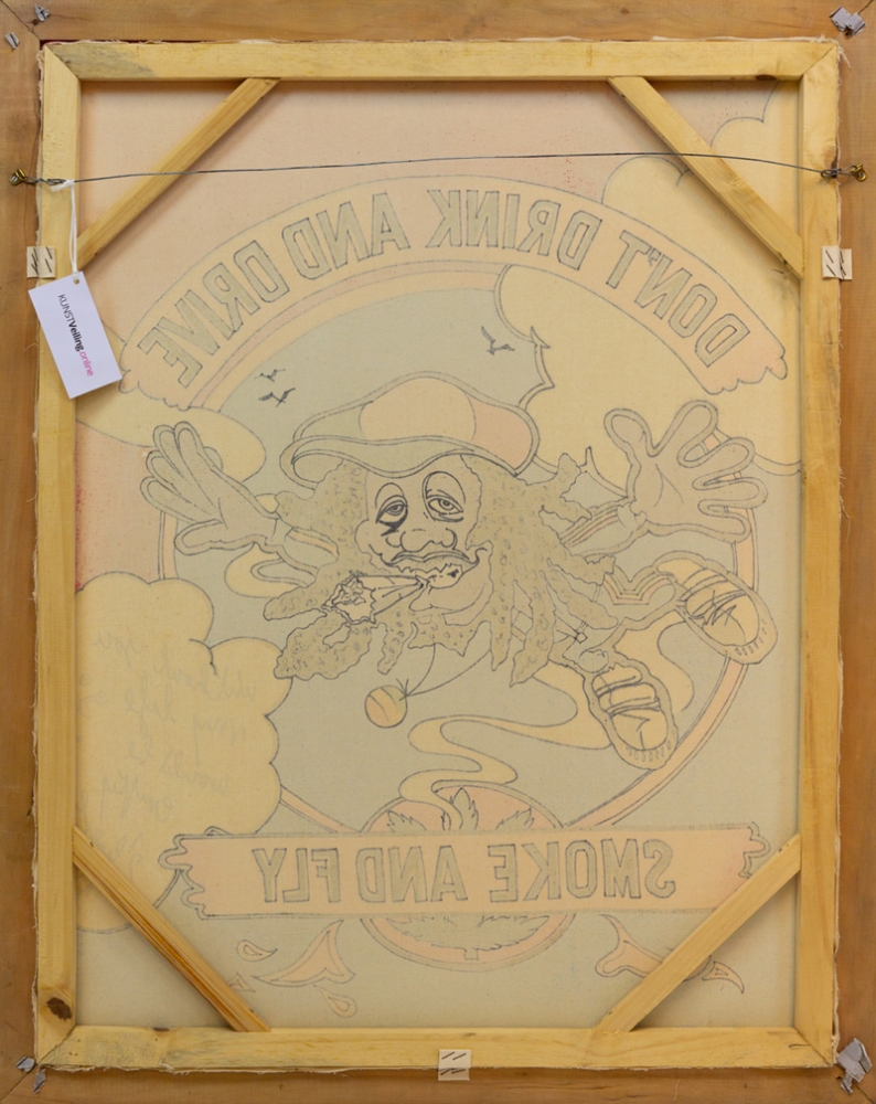 Werk is in uitstekende staat, en ingekaderd in een blauwe omlijsting. Omlijsting is in goede staat maar heeft een paar kleinere onvolkomendheden.