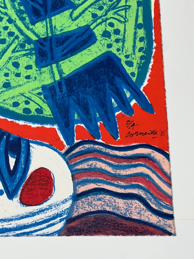 Oeuvre rare avec une belle maîtrise des couleurs. Exemplaire d'artiste EA, signée et datée à l'encre en bas à droite avec Tampon Atelier Corneille au dos. Très bon état Exposition des 75 ans de Cobra à Partir du 1er Juin au Cobra Museum à Amstelveen. Exposition Cobra de la plus grande collection américaine de Corneille à Miami au printemps et en été 2023. Rétrospective Corneille qui vient de terminer ce 15 Janvier au Cobra Museum à Amstelveen. Sortie d'un timbre Cobra / Corneille chez Bpost en 2023 Bijoux Corneille exposés à la Fondation Boghossian jusqu'au 14 Mai 2023 (Ornamentum, Collection Diane Venet)