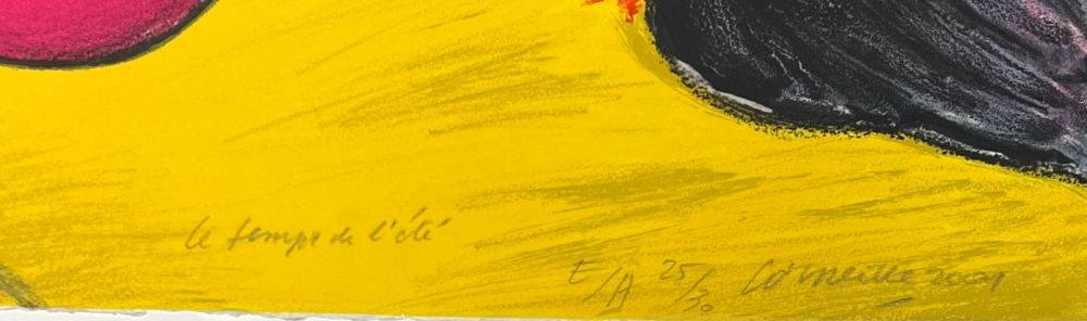Oeuvre rare avec une belle maîtrise des couleurs. Une oeuvre de Corneille est toujours une invitation au voyage. Epreuve d'artiste 25/30, signée et datée au graphite par Corneille en bas. avec Tampon Atelier Corneille au dos. Très bon état Exposition des 75 ans de Cobra à Partir du 1er Juin au Cobra Museum à Amstelveen. Exposition Cobra de la plus grande collection américaine de Corneille à Miami au printemps et en été 2023. Rétrospective Corneille qui vient de terminer ce 15 Janvier au Cobra Museum à Amstelveen. Sortie d'un timbre Cobra / Corneille chez Bpost en 2023 Bijoux Corneille exposés à la Fondation Boghossian jusqu'au 14 Mai 2023 (Ornamentum, Collection Diane Venet)