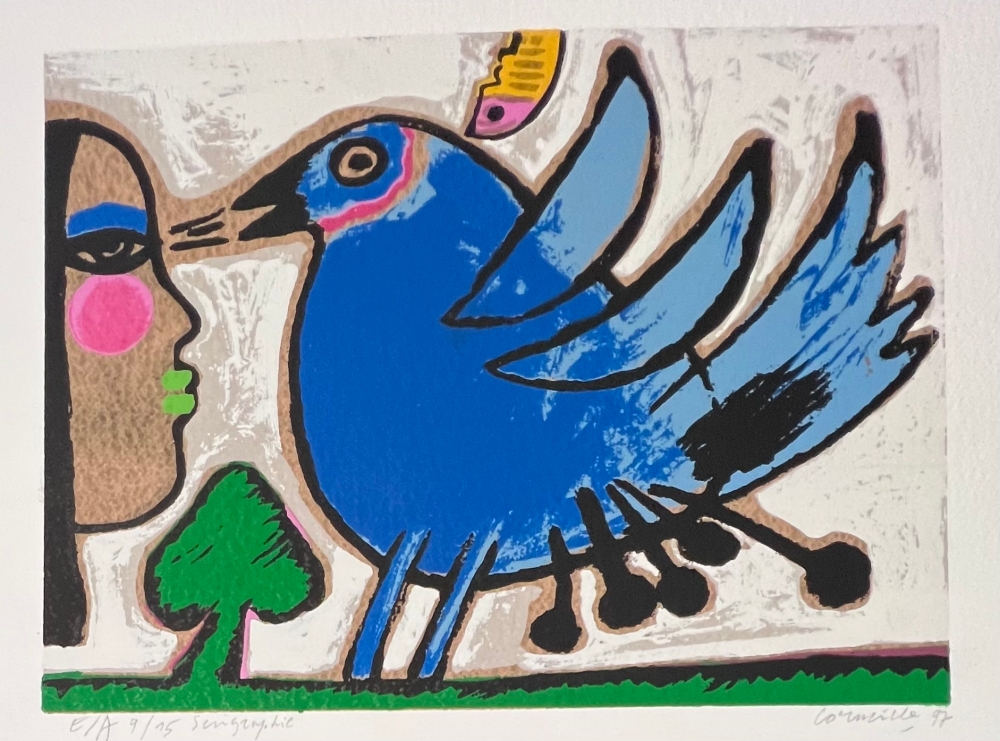 Oeuvre rare avec une belle maîtrise des couleurs. Sérigraphie sur papier vélin épais granulé. Exemplaire d'artiste EA 9/15, signée et datée au graphite par Corneille en bas . avec Tampon Atelier Corneille au dos. Très bon état Exposition des 75 ans de Cobra à Partir du 1er Juin au Cobra Museum à Amstelveen. Exposition Cobra de la plus grande collection américaine de Corneille à Miami au printemps et en été 2023. Rétrospective Corneille qui vient de terminer ce 15 Janvier au Cobra Museum à Amstelveen. Sortie d'un timbre Cobra / Corneille chez Bpost en 2023 Bijoux Corneille exposés à la Fondation Boghossian jusqu'au 14 Mai 2023 (Ornamentum, Collection Diane Venet)