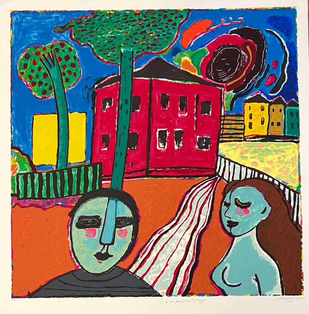 Peintre érudit, Guillaume Corneille aime faire référence à l'histoire de l'art passée, notamment aux peintres coloristes. Guillaume Corneille reprend ici un e composition de Edvard Munch Exemplaire d'artiste, signée et datée au graphite par Corneille en bas. avec Tampon Atelier Corneille au dos. Très bon état 81 x 80 cm Exposition des 75 ans de Cobra à Partir du 1er Juin au Cobra Museum à Amstelveen. Exposition Cobra de la plus grande collection américaine de Corneille à Miami au printemps et en été 2023. Rétrospective Corneille qui vient de terminer ce 15 Janvier au Cobra Museum à Amstelveen. Sortie d'un timbre Cobra / Corneille chez Bpost en 2023 Bijoux Corneille exposés à la Fondation Boghossian jusqu'au 14 Mai 2023 (Ornamentum, Collection Diane Venet)