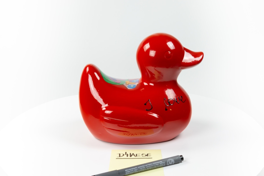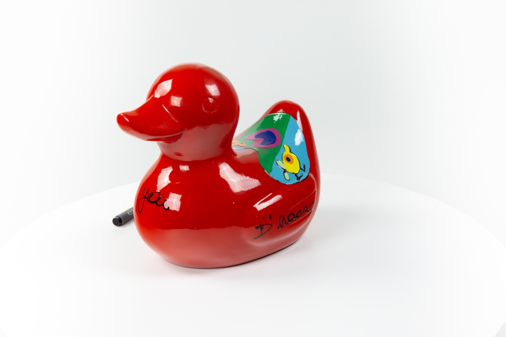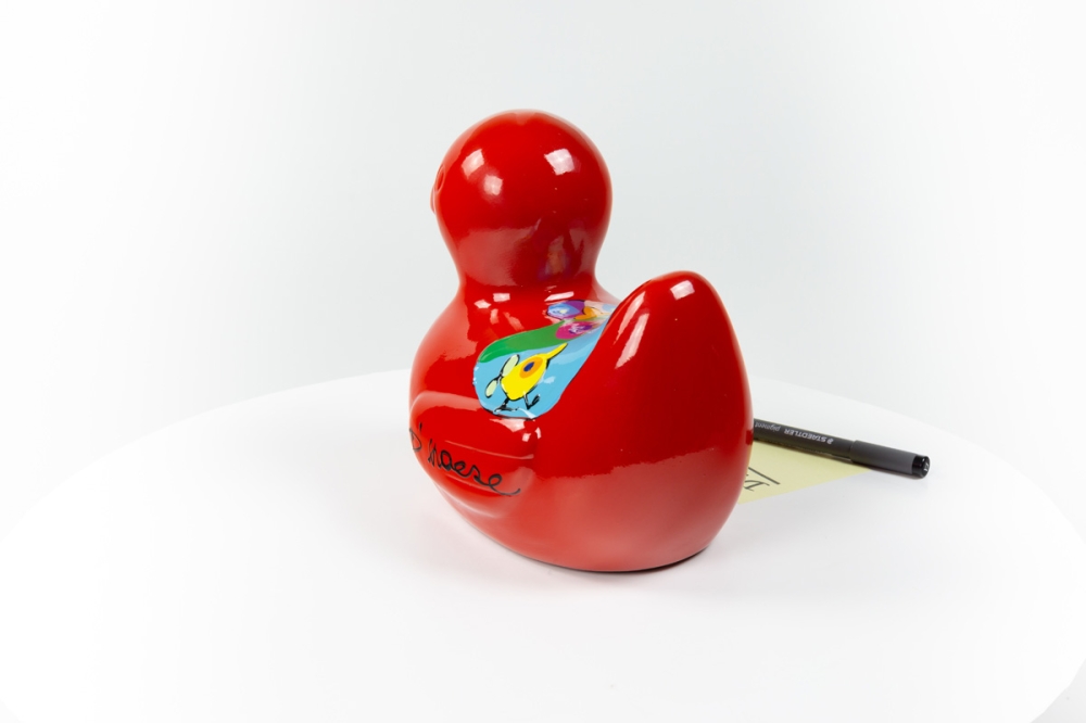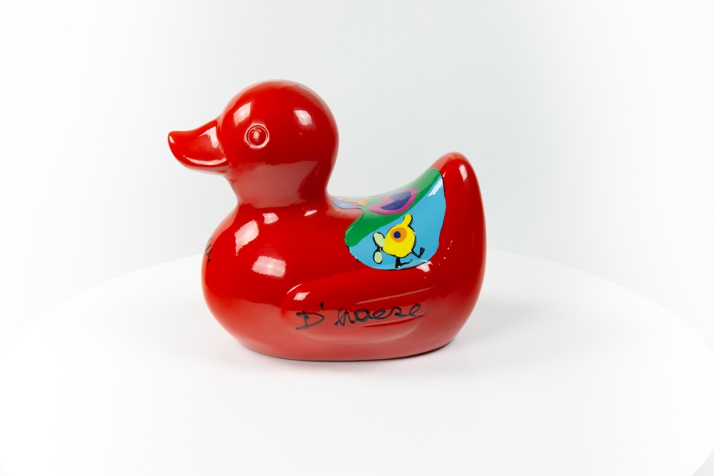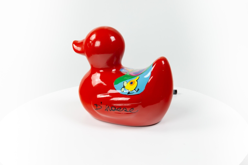 Sculpture de Hannes D'Haese sous la forme d'un caneton. L'article était uniquement peint au dos et signé à la main, en peinture.