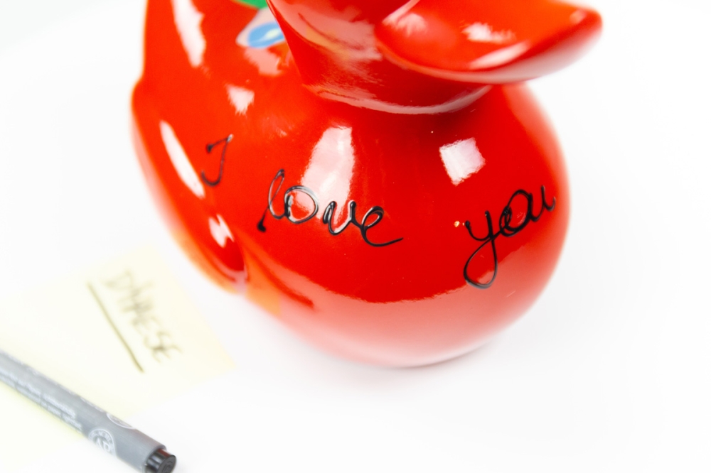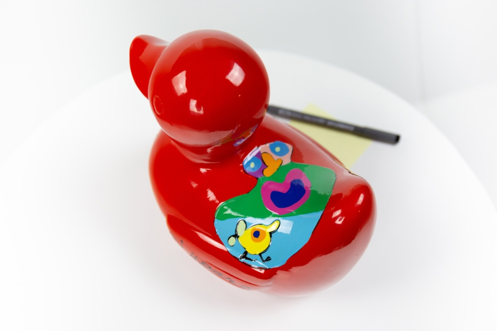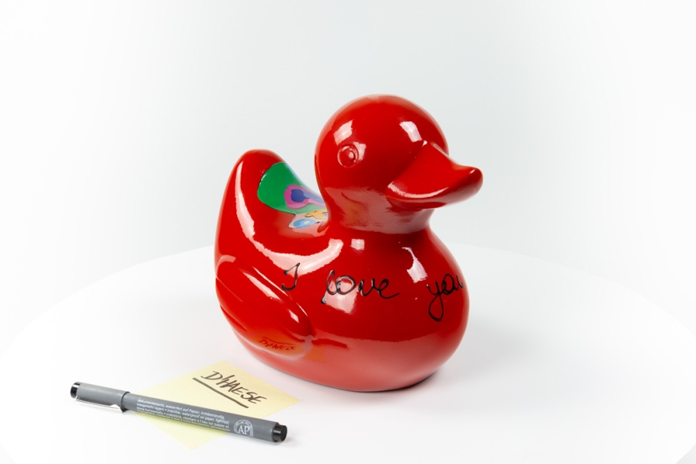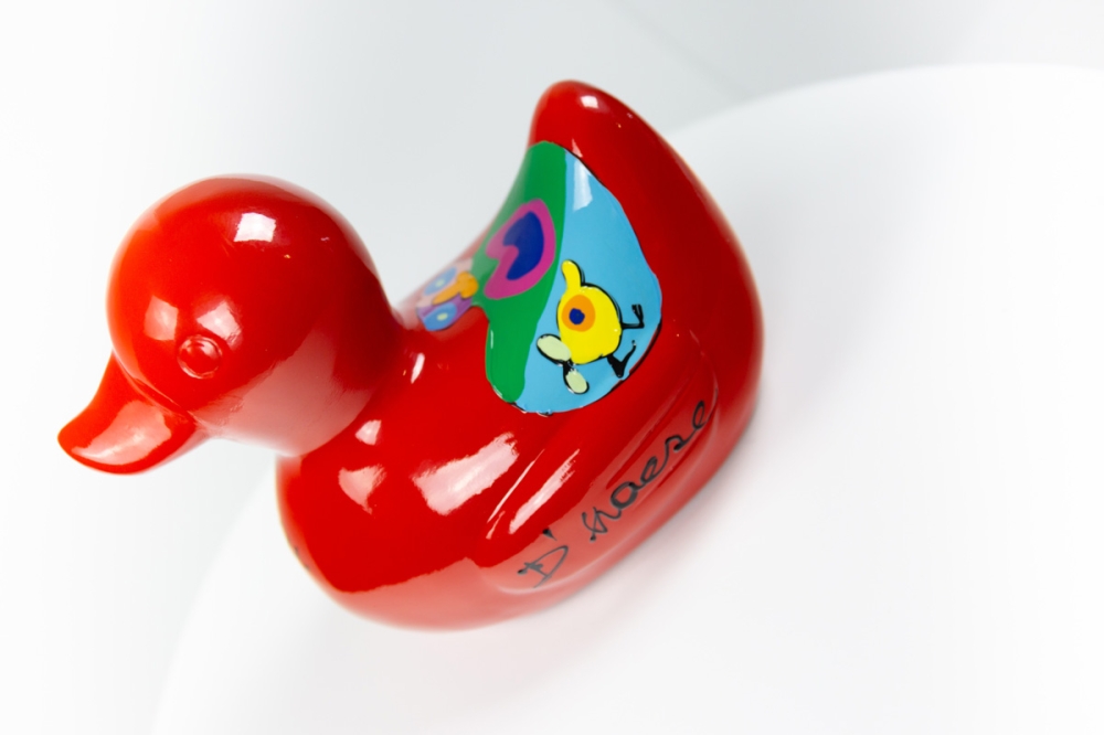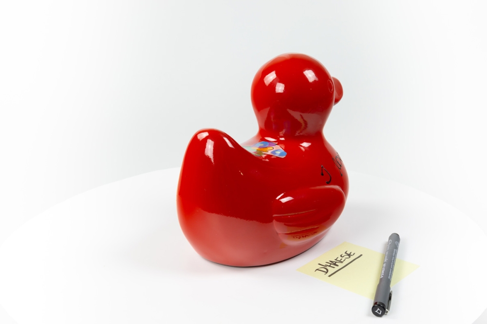 Sculpture de Hannes D'Haese sous la forme d'un caneton. L'article était uniquement peint au dos et signé à la main, en peinture.
