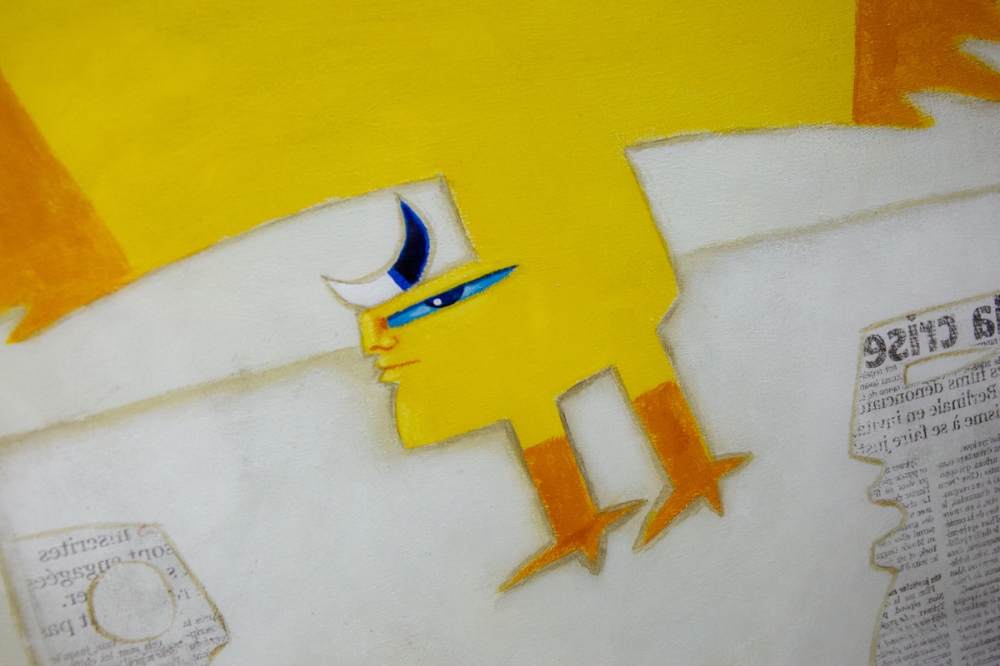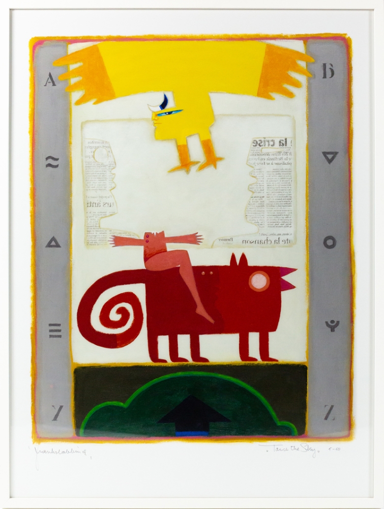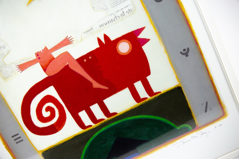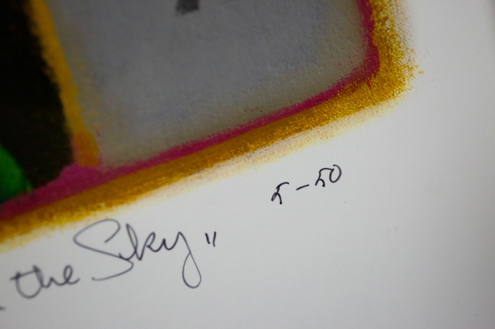 Ingekaderd in een sobere, houten witte kader met uv-werend glas. In goede tot uitstekende staat.