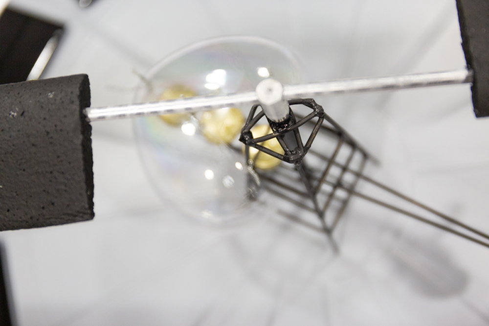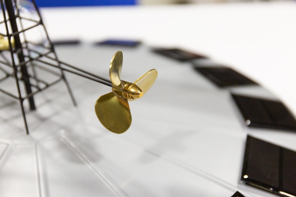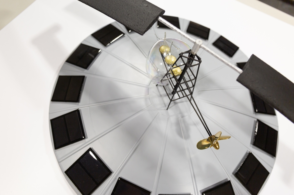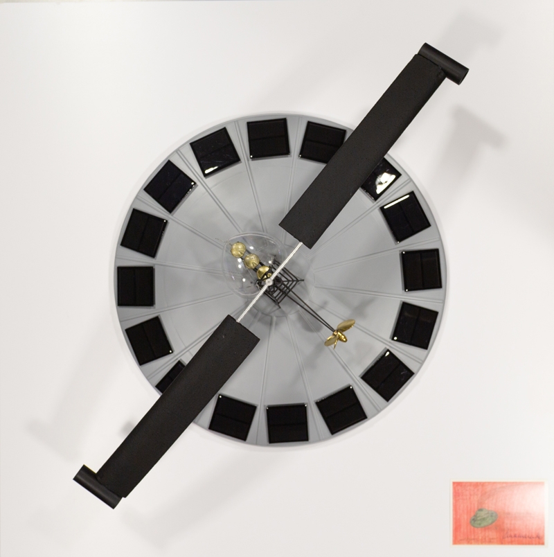 Mooi en nieuw samengestelde vliegend eiland op basis van de gelimiteerde bouwdoos uit 2004, uitgegeven door het Vlaams parlement. Dit object is gemaakt op basis van de bouwdoos. Er werden echter eigen creaties aan toegevoegd door de bouwer van de bouwdoos die afwijken van het initiële handleiding dat Panamarenko opgesteld heeft. Het werk zit in een mooie kast in plexiglas die ook aan de muur gehangen kan worden. De vleugels worden aangedreven via een een reeks zonnepanelen. Het werk is in zo goed als perfecte staat. Het werk is gesigneerd op een bijhorend kaartje.