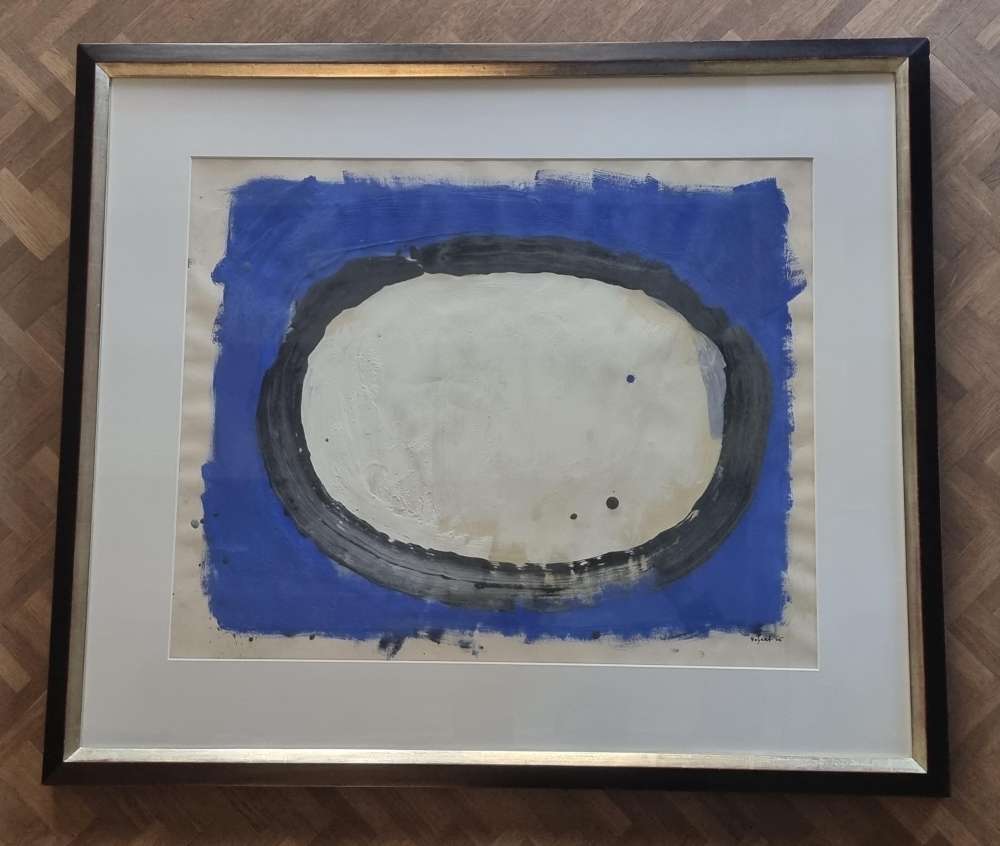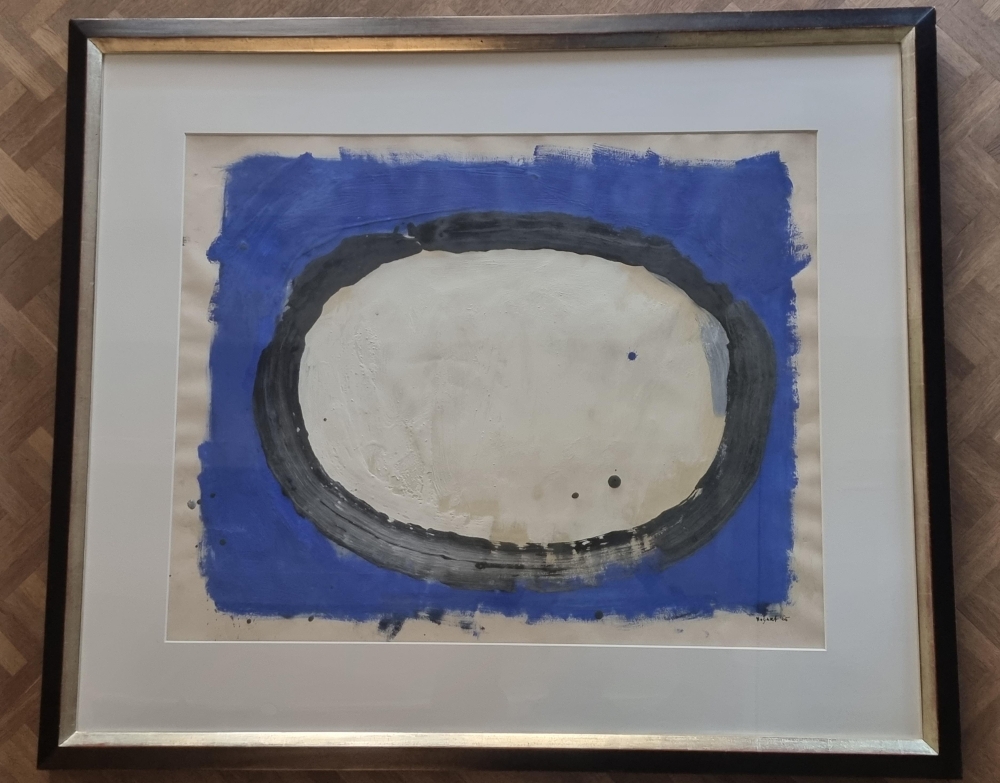 Originele gouache op papier van Bram Bogart uit (zijn beste periode) 1965. Het werk is gesigneerd op de voorzijde. Het werk is gesigneerd en gedateerd op de achterzijde 'Bram Bogart Aug. 1965 (2x) Groot formaat. Ingelijst.