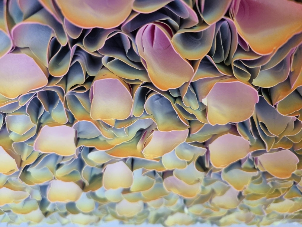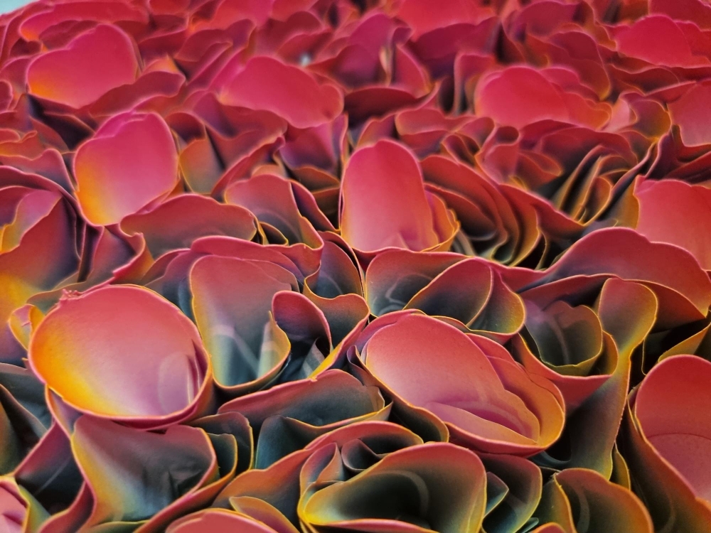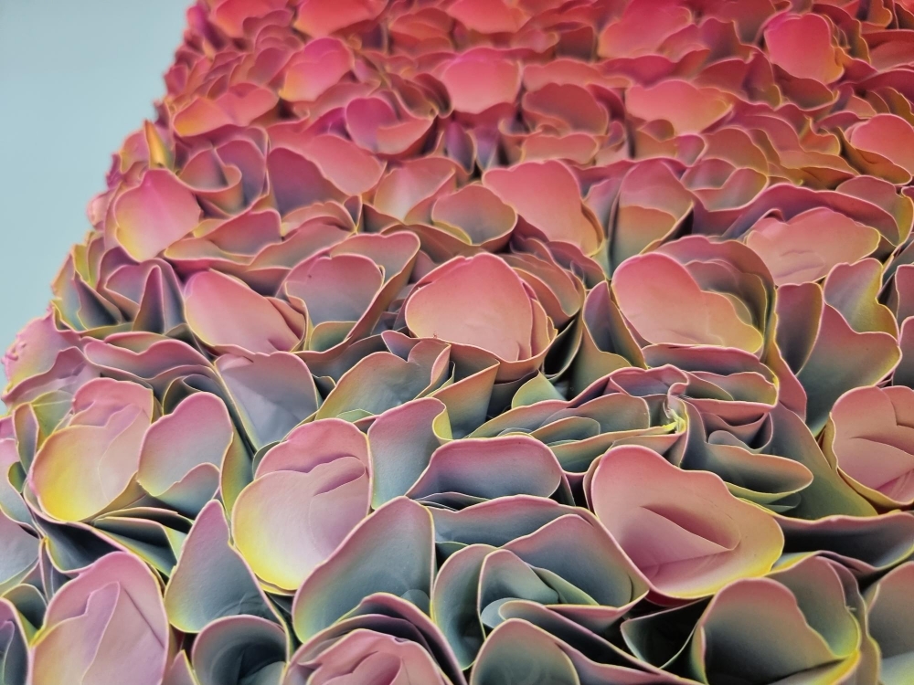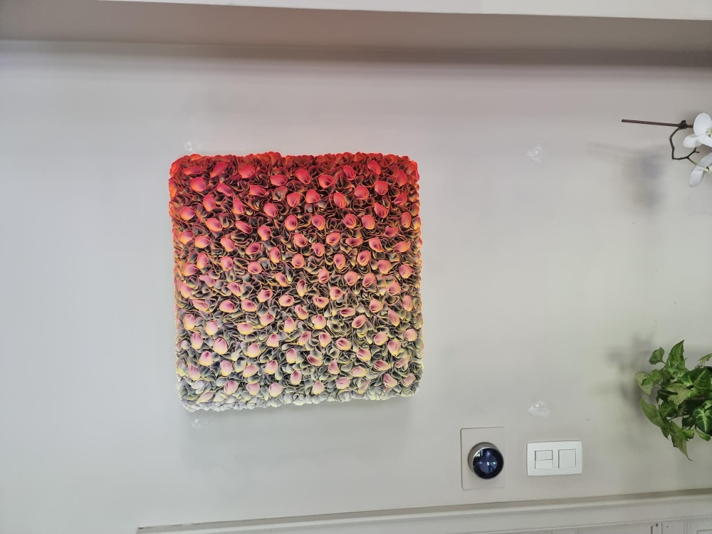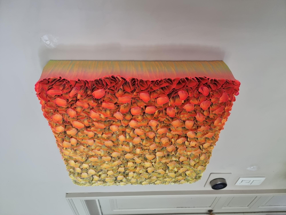 Prachtig origineel werk van de Chines kunstenaar Hong Zi Huang. Een mixed media werk van rijstpapier & acryl op canvas. Het bijzondere aan deze werken van de Chinese kunstenaar is dat door de verschillende lichtinvallen en hoeken het werk ook andere kleurschakeringen laat zien (zie ook foto's). Bij dit werk hoort ook een certificaat.