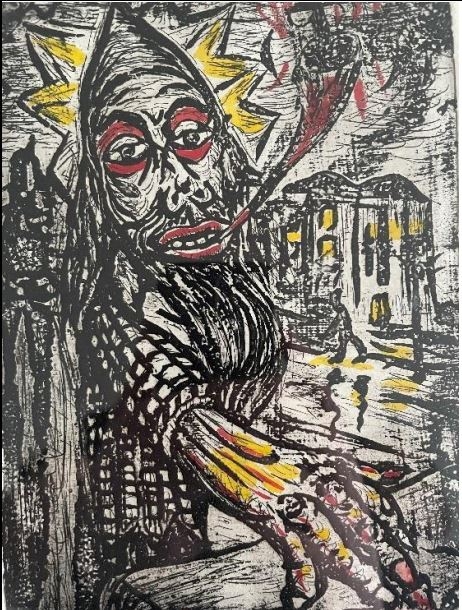 Belle gravure de l'artiste belge Fred Bervoets. Autoportrait Signé Daté '90 29 × 20,5 cm L'oeuvre est encadrée.