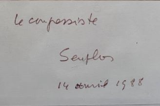 Technique mixte (dessin avec collage et aquarelle) de Michel Seuphor. Signé au dos Daté 1988 au dos Titré "le compositeur" au dos 74x52cm encadré