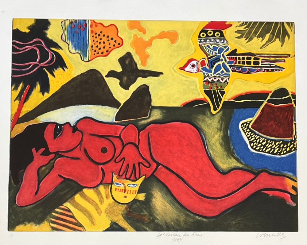 Belle oeuvre invitant au voyage et à l'évasion, signée, titrée et datée par Guillaume Corneille au graphite. 59,5 x 80,5 cm Exemplaire d'artiste S/Z avec tampon Atelier Corneille au dos Eau-forte aux 7 couleurs -Timbre à sec et certificat au dos de l'atelier d'impression : Prospettive d'Arte, Milano.
