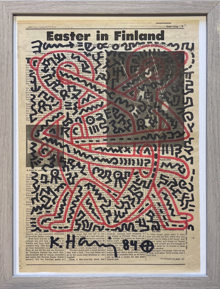 Dessin original sur papier journal du Daily News daté du jeudi 16 avril 1984. L'ouvrage est en parfait état, avec un pli dans le journal en bas à droite. L'oeuvre est encadrée dans un cadre couleur bois.