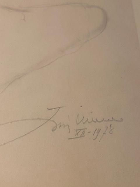 Mooie originele tekening van Joris Minne uit 1978. De kader dient wel vervangen te worden en er is ook geen glas voor. De tekening zelf is in goede staat. Joris Minne was een Belgisch beeldend kunstenaar. Hij is bekend als een van de bijdragers aan het tijdschrift Lumière.