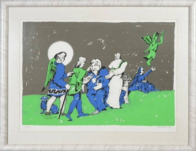 Mooie litho van Lucebert, handgesigneerd door de kunstenaar. Lucebert, pseudoniem van Lubertus Jacobus Swaanswijk was een Nederlands dichter en schilder. Als dichter werd hij gezien als de voorman van de beweging van de Vijftigers, een progressieve groep dichters die na de Tweede Wereldoorlog begon te experimenteren met vorm en inhoud