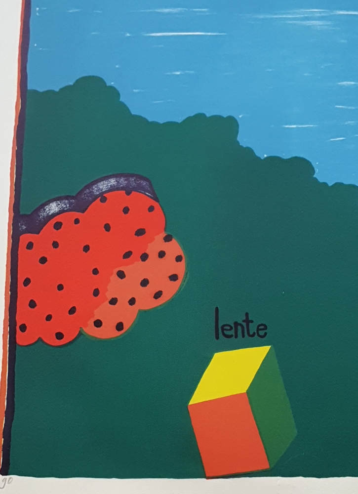 Mooie grote en kleurrijke lithografie van de nog levende Nederlandse kunstenaar Reinier Lucassen (°1939).