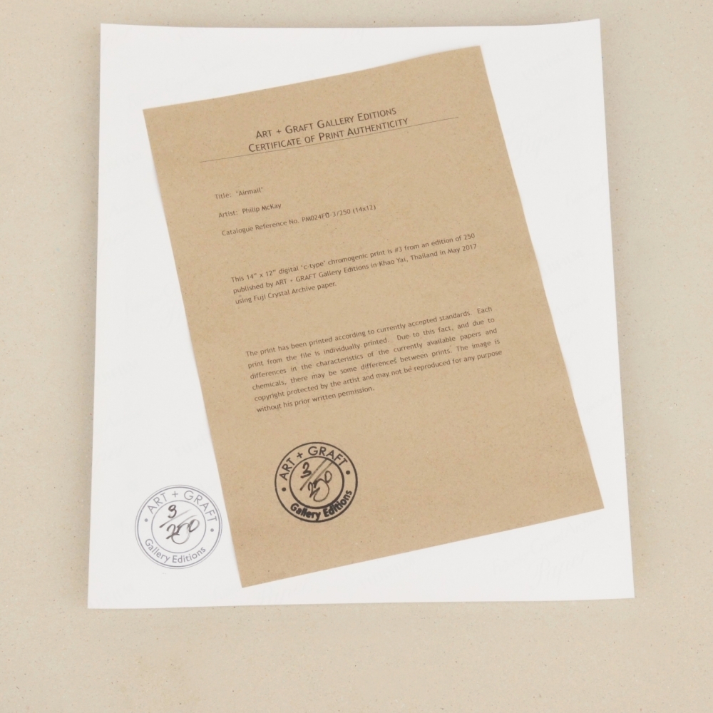 ● Philip Mckay is een Engelse kunstenaar, geboren in 1963. Zijn werk omvat fotografie en digitale kunst. ● Hij wordt beïnvloed door gebeurtenissen uit het verleden en gebruikt wanhoop en eenzaamheid als basis van zijn surrealistische & atmosferische universum. Zijn kunst is peinzend en dromerig. Beïnvloed door mensen als Dali en Magritte, creëert hij vakkundig nieuwe en ongewone realiteiten. Zijn conceptuele beelden worden regelmatig gepubliceerd als muziekalbumhoezen en vertegenwoordigd door kunstgalerijen in het VK en daarbuiten. ● Chromogene print op Fuji Crystal Archive papier ● Papierformaat - 14 "x 12" (36 x 30 cm) ● Afbeeldingsgrootte - 10½" x 10½" (26 x 26 cm) ● Gesigneerd in de plaat ● Genummerde galerijstempel ● Certificaat van afdrukauthenticiteit ● Titel onder afbeelding ● Conditie - MINT ● Wordt verzonden in een grote PVC-buis