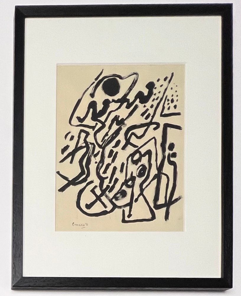 Oost-Indische inkt op papier, gesigneerd en gedateerd linksonder in inkt. Fijn origineel vroeg werk, gemaakt door de schilder op 31-jarige leeftijd, geleverd met een certificaat van echtheid. Afmeting met lijst : 42 x 32 cm, ongeveer. Formaat van het werk: 25,5 x 19,5 cm. Het "spektakel van de natuur", bestaande uit geologische bubbels, is een terugkerend thema in het werk van Guillaume Corneille. In zijn zogenaamde "ontkiemende abstractie" (de term werd bedacht door de kunstcriticus Charles Estienne), komen de figuren geleidelijk tevoorschijn en onthullen zich, als een ontluikende plant. De kunst van Guillaume Corneille is altijd verhalend. Guillaume Corneille (1922-2010) werd in Luik geboren uit Nederlandse ouders en was lid van de Cobra-groep, samen met Constant, Dotremont, Karel Appel, Asger Jorn, Noiret, Doucet en Alechinsky.